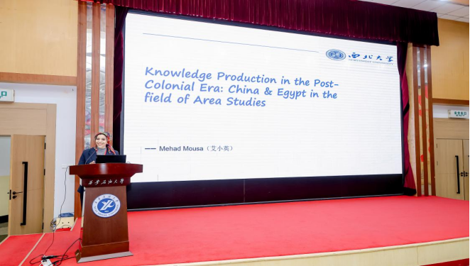 西北大學Mehad Mousa博士作題為《后殖民時代的知識生產:中國與埃及高校區域國別研究的互鑒與競爭》的主旨報告,她指出在后殖民時代,區域國別研究長期受西方學術霸權影響,但近年來,中國與埃及作為非西方文明古國,正嘗試構建本土化的知識生產體系。