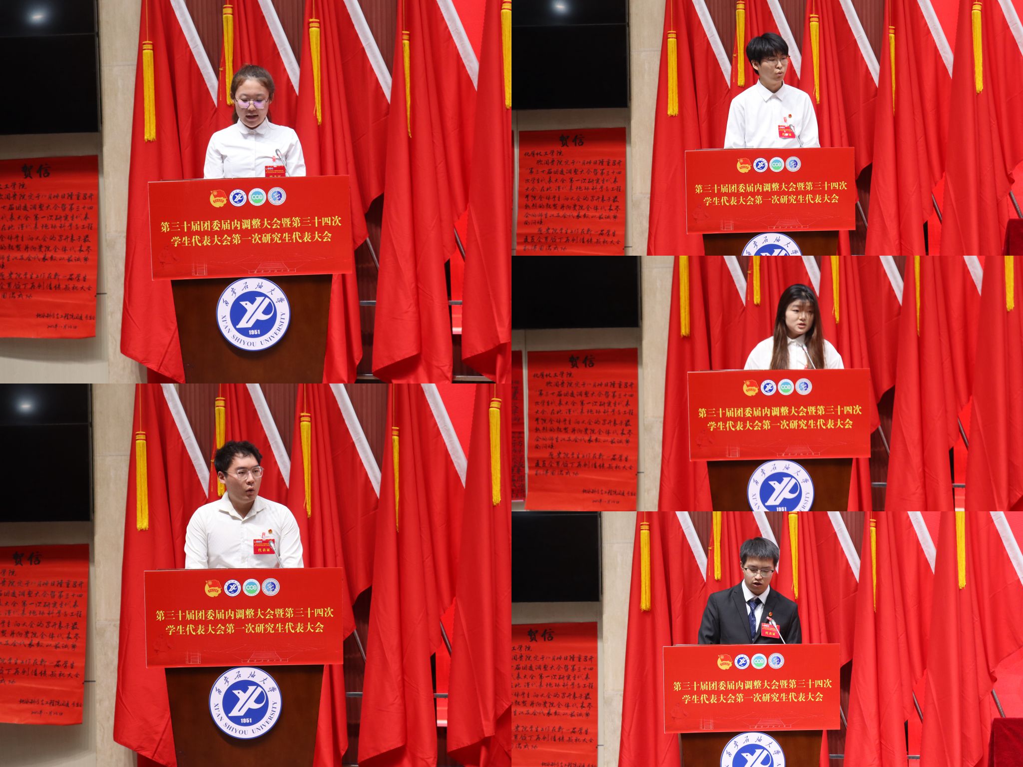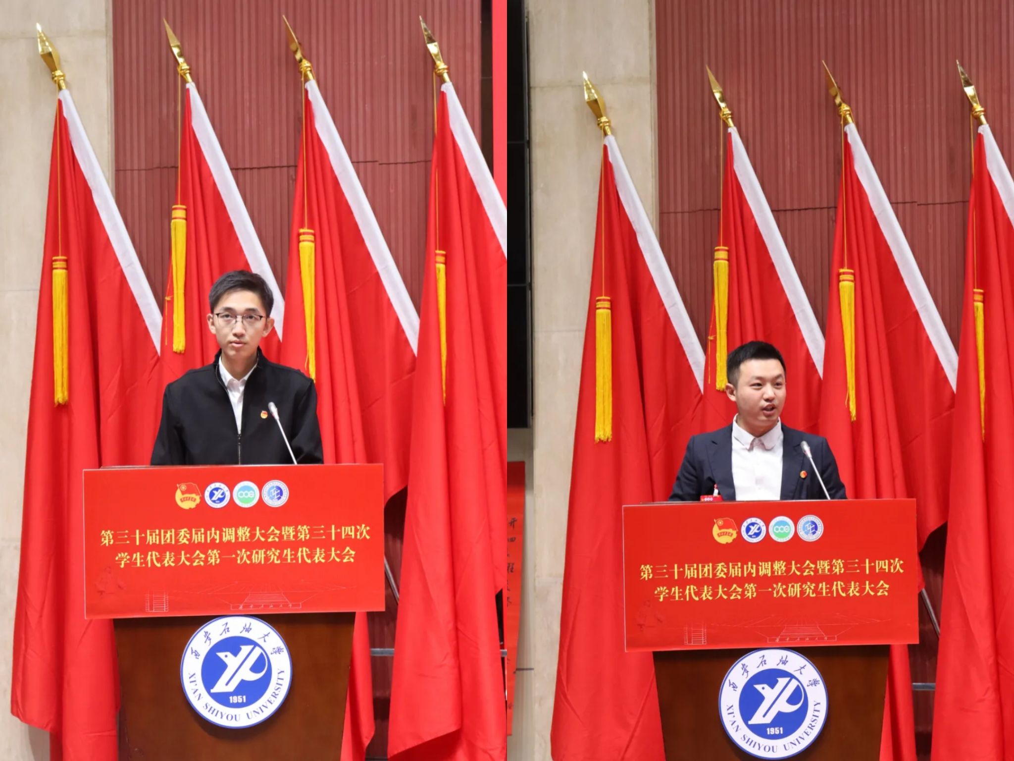 新當選的化學化工學院第三十四屆學生會、第一屆研究生會代表分別發言,展望新一學年的團學工作,他們表示將不辜負組織的培養和全體代表的信任,恪盡職守,勤勉工作,團結協作,銳意進取,努力推動化學化工學院團學工作再上新臺階,為服務同學成長成才和學院發展建設貢獻全部力量。