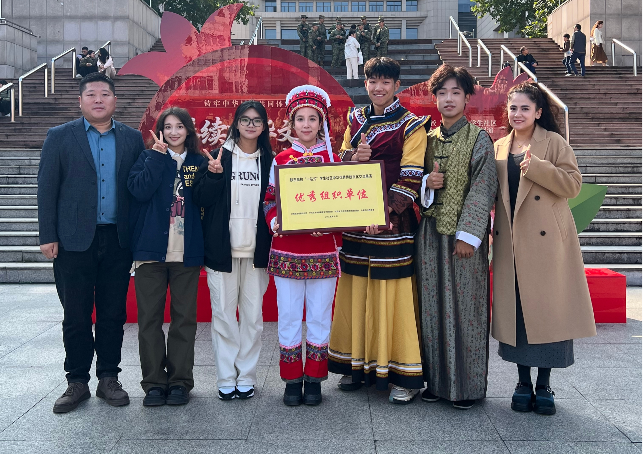 10月26日上午“鑄牢中華民族共同體意識——賡續中華文脈,鑄魂時代新人”2025年陜西高校“一站式”學生社區中華優秀傳統文化交流展演活動在西安交通大學圓滿落幕。我校黨委統戰部、學生工作部(處)工作人員及學生代表十余人共同參加活動,并榮獲“優秀組織單位”稱號。