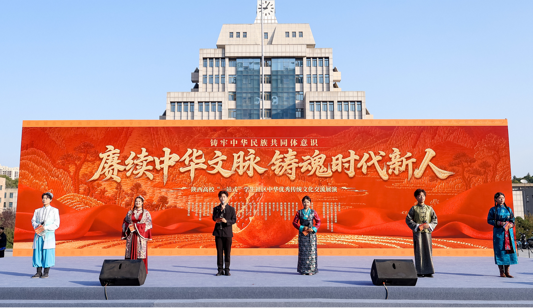 本次活動由陜西省委統戰部、省委教育工委、省民宗委、共青團陜西省委聯合主辦,通過民族團結文藝匯演、各民族優秀傳統文化及實物展等內容,為全場師生打造了一場立體多元的中華優秀傳統文化盛宴。