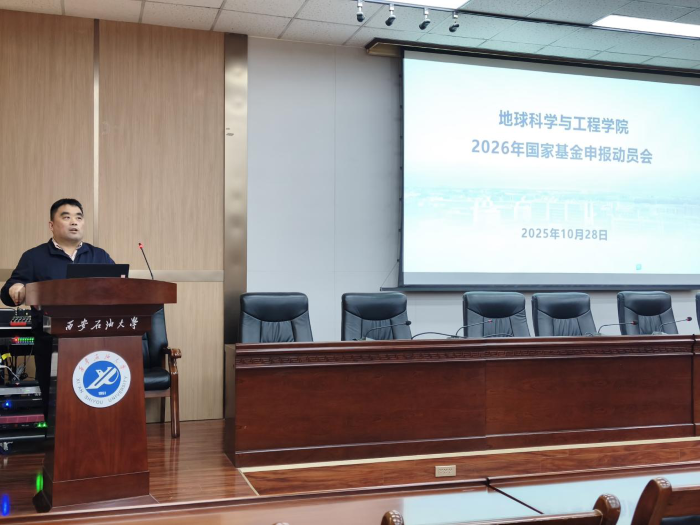 為推進2026年度國家基金申報工作,激發全院教師申報熱情,2025年10月28日,在雁塔校區第五會議室,地球科學與工程學院召開了2026年國家基金申報動員大會,同時邀請了中國科學院地球環境研究所國家杰出青年科學基金獲得者金章東研究員做專題報告。學院院長宋立軍、副院長曹靜杰及擬申報國家基金的50余名教師參加了會議。會議由副院長曹靜杰主持。