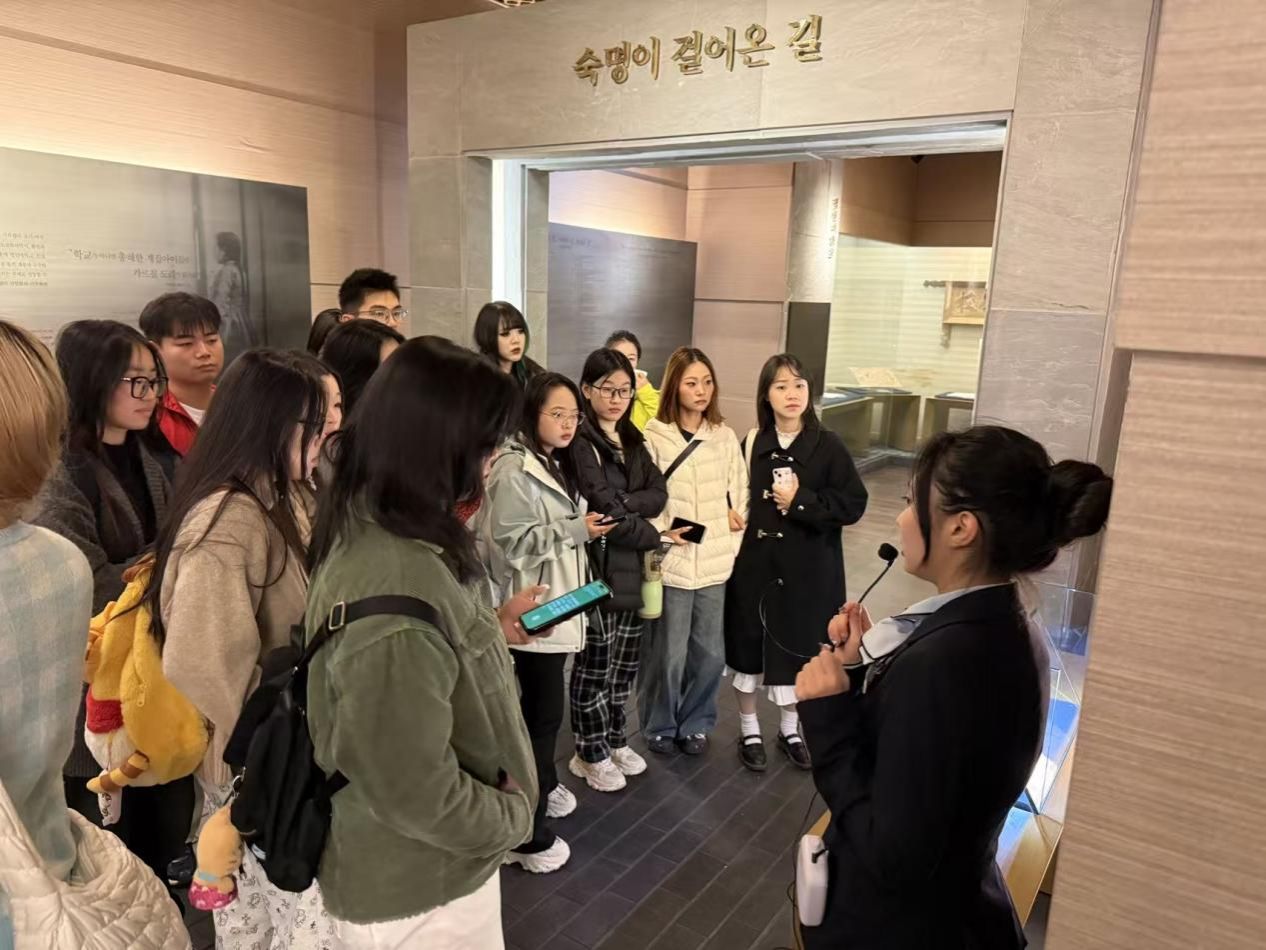 歡迎儀式后,師生們在淑明女子大學學生講解員的帶領下參觀了優美寧靜的校園與記載著百年學術脈絡的校史館,通過實地走訪和珍貴史料,直觀感受了淑明女子大學深厚的辦學傳統與獨特的教育文化。