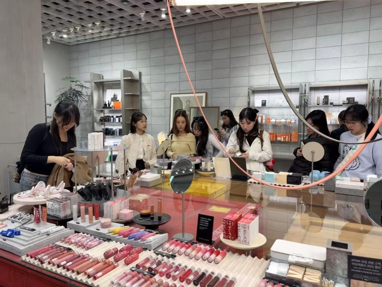 企業參訪環節為同學們提供了近距離觀察韓國產業創新實踐的寶貴機會。在韓國最大的美容化妝品集團愛茉莉太平洋,師生們參觀了品牌體驗館,深入了解其產品設計和品牌營銷的創新體系。