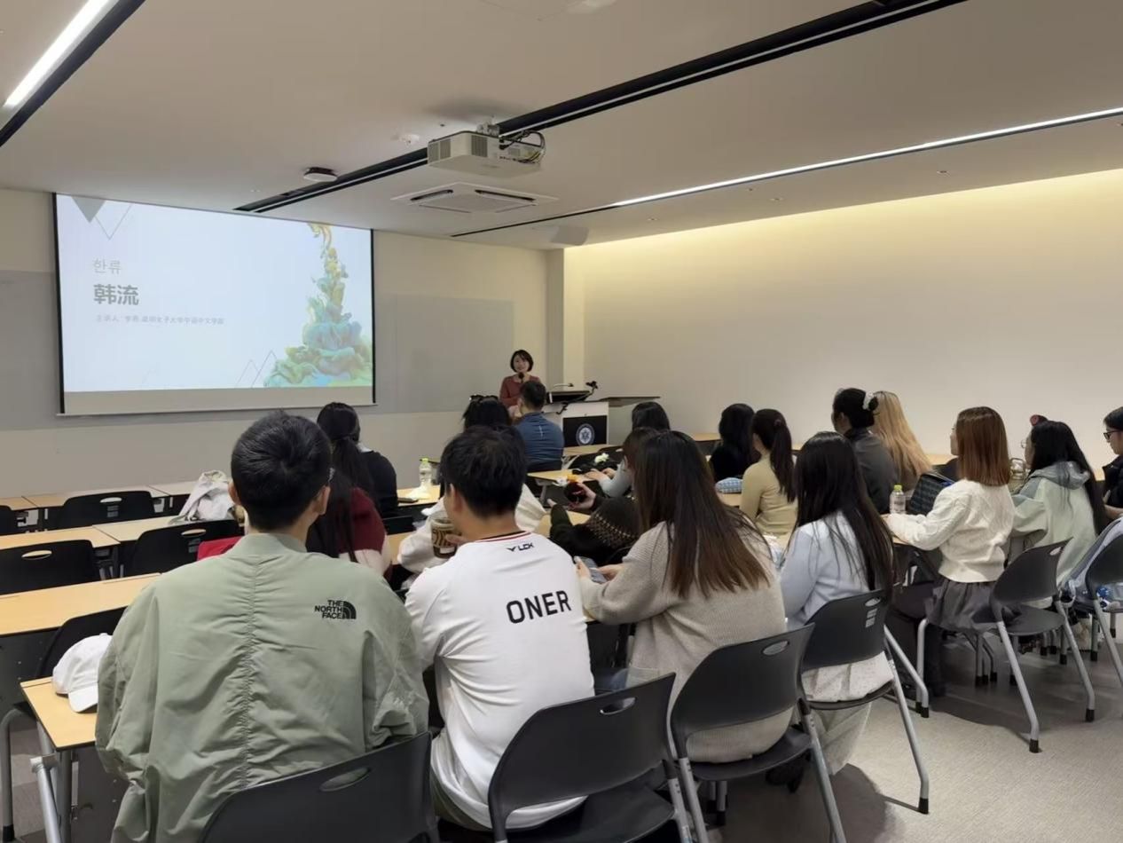 李燕教授帶來的《韓流》專題研討,則從文化研究的維度展現了韓國軟實力。通過詳實的數據分析和生動的案例展示,系統闡釋了韓國流行文化在影視制作、音樂產業、時尚美妝等領域的創新實踐與全球傳播策略。講座現場,師生圍繞文化創新、青年責任等議題展開討論,思維的火花在交流中不斷迸發。
