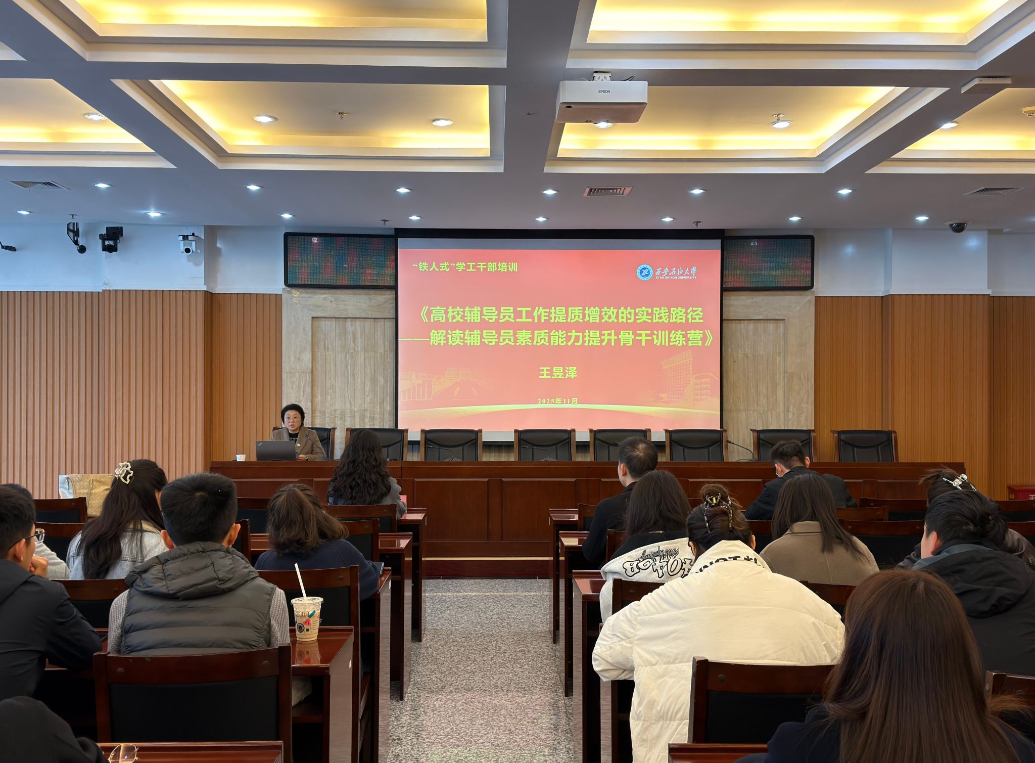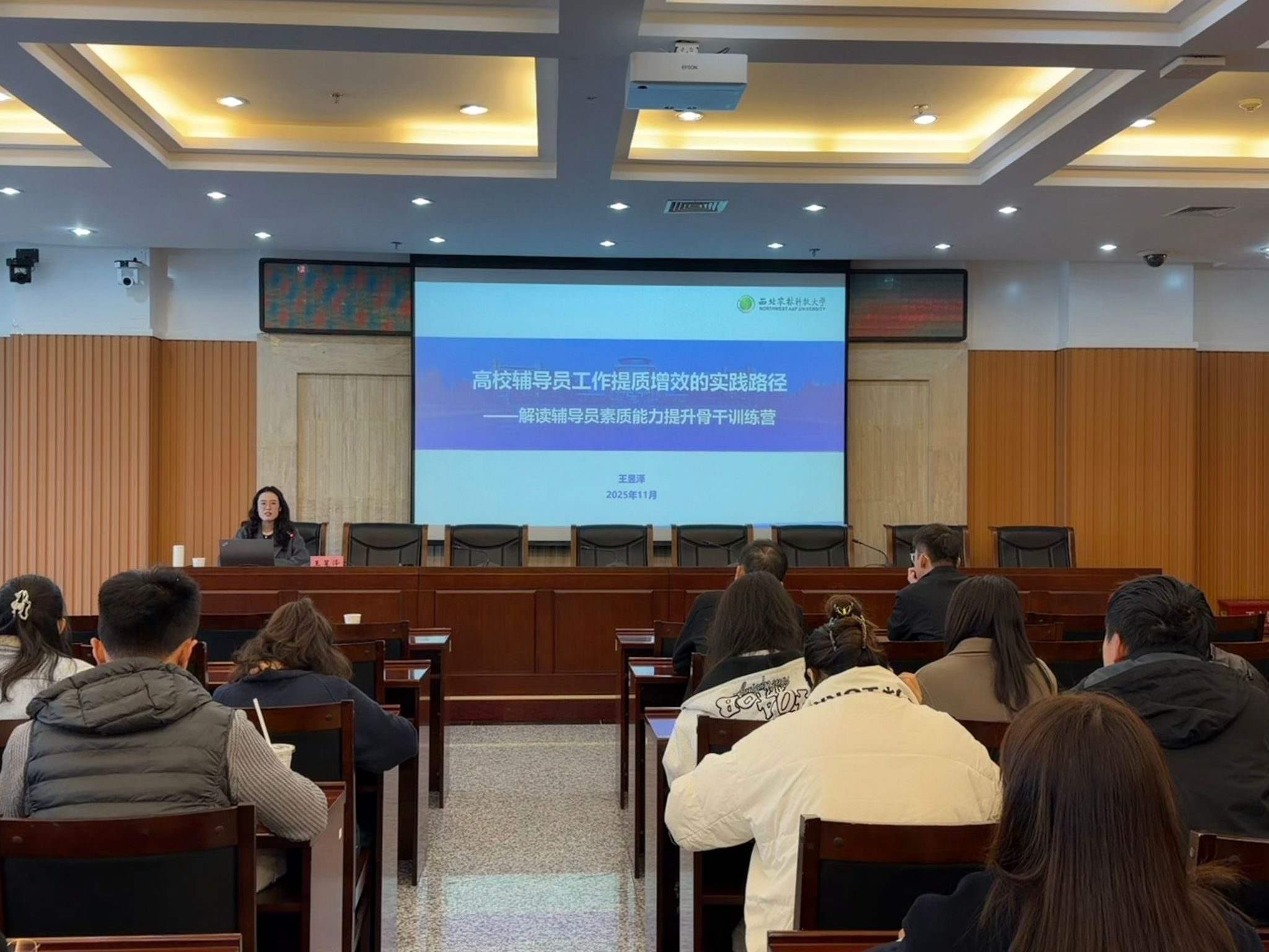 為進一步提升我校學工干部專業素養與工作實效,落實立德樹人根本任務,11 月 3 日上午,我校在鄠邑校區圖書館第一會議室舉辦 “鐵人式” 學工干部培訓第七講。本次培訓邀請西北農林科技大學資源環境學院團委書記兼學生工作秘書王昱澤,作《高校輔導員工作提質增效的實踐路徑 —— 解讀輔導員素質能力提升骨干訓練營》專題報告。培訓由學生工作部副部長畢軼慧主持,全體學工干部參加。
