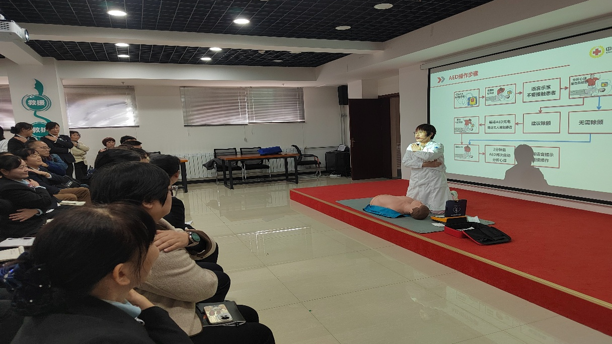 本次培訓由校醫院伍曉燕主任領銜的急救師資團隊授課,采用“理論講解+實操演練”的沉浸式教學模式。理論環節中,海春會講師結合真實應急案例,以生動通俗的語言,系統解析心肺復蘇(CPR)核心要點、自動體外除顫器(AED)使用原理、氣道異物梗阻(海姆立克急救法)處置流程等關鍵知識,為參訓教職工構建系統化、專業化的急救理論體系,儲備專業知識力量。同步開展的科普講座,圍繞學校衛生消毒規范、出血熱防控要點、病媒生物防治技巧展開,進一步豐富教職工健康防護知識儲備。