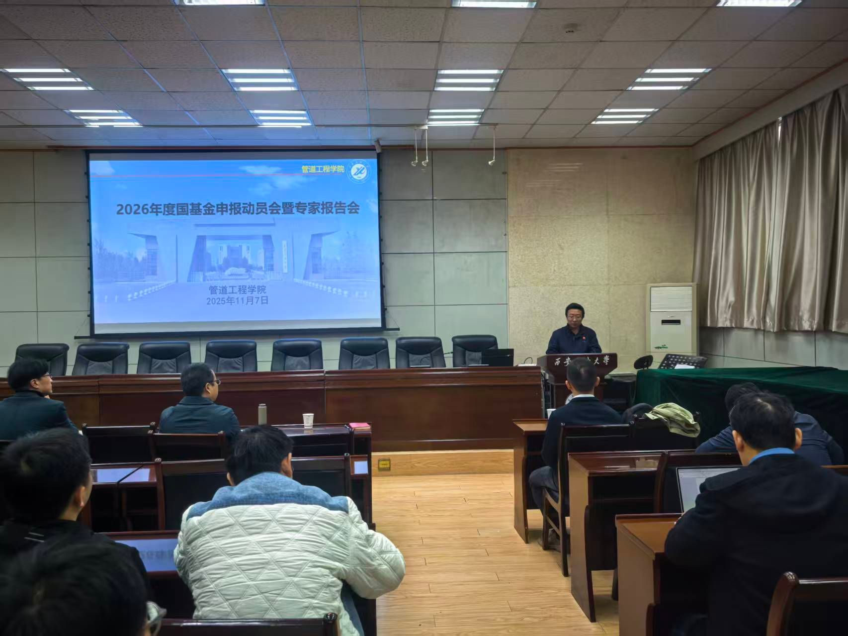 為進一步提升學院科研創新能力與核心競爭力,充分激發教師申報國家自然科學基金項目的積極性,切實提高申報質量與成功率,11 月 7 日上午,管道工程學院在雁塔校區會議中心第三會議室召開2026年度國家自然科學基金項目申報動員會暨專家報告會。報告特邀湖南大學二級教授鄧露作專題分享,院長蔣華義、副院長崔瑩及全院教師參加會議,會議由副院長代建波主持。