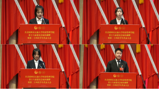 會上,學院團委書記張碩宣讀了《共青團西安石油大學經濟管理學院委員會關于第十八屆委員會組織成員調整任命的通知》,新任團委委員依次表態發言。團學指導老師李政宣讀了《第二十四次學生代表大會選舉辦法》,與會代表民主投票選舉產生了新一屆學生委員會委員。大會聽取并審議通過了《大會籌備工作報告》《第二十三屆學生會年度工作報告》和《第二十四次學生代表大會提案工作報告》,新任團委委員、當選學生委員會委員面向團旗進行了莊嚴宣誓。