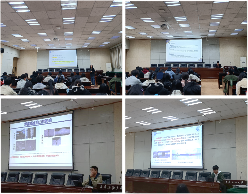 海國娟圍繞科研工作的開展路徑,為同學們系統講解了如何高效進行科學研究,并針對科研過程中需關注的關鍵問題、科研思路的構建與拓展以及具體研究方法的運用等方面,提供了深入而實用的指導。馬笑、郭文哲、薛海洋分別圍繞形貌調控驅動的有機太陽能電池制備與性能研究、多因素協同作用下油氣開采封堵工具用可溶鎂合金腐蝕行為調控機制研究和復雜焊接結構應力評估、性能調控及高效分析技術研究與工程應用三個主題,通過自己的科研實踐,分享了課題研究進展、文獻分析方法和科研探索心得,總結了科研成果形成過程、論文寫作方法和下一步研究方向。