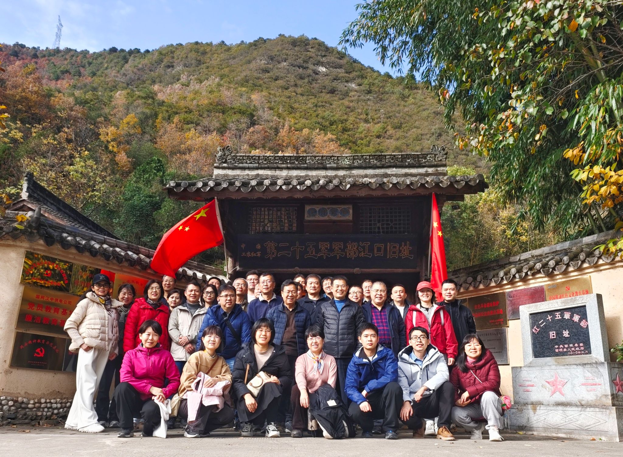 紅二十五軍軍部舊址位于漢中市留壩縣江口鎮河西村四組羅家院子,院內設有圖文展室、軍部會議室、紅二十五軍領導人雕像等。老師們通過詳實的圖文資料和珍貴的歷史遺物,了解了當年紅二十五軍途徑江口,在留壩打土豪、分田地的革命豪情和建立蘇維埃政權的歷史成就。