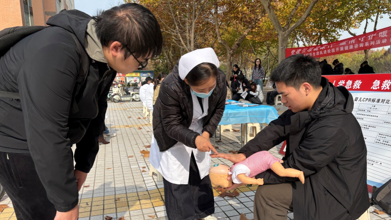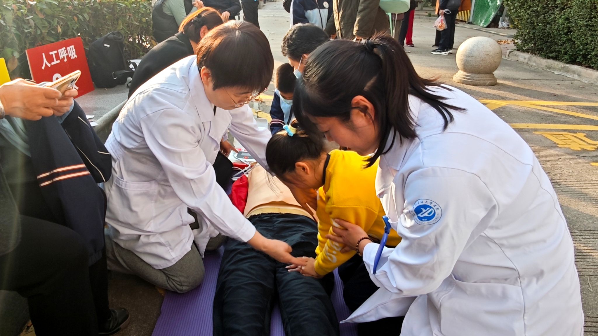 為提升校園應急救護能力,校醫院護理部急救師資團隊在兩場活動中同步開展應急救護實操培訓。借助模擬人教具,重點演示心肺復蘇(CPR)、自動體外除顫儀(AED)操作及海姆立克急救法,將專業操作拆解為清晰步驟,采用“理論講解+模擬實操”相結合的方式授課。
