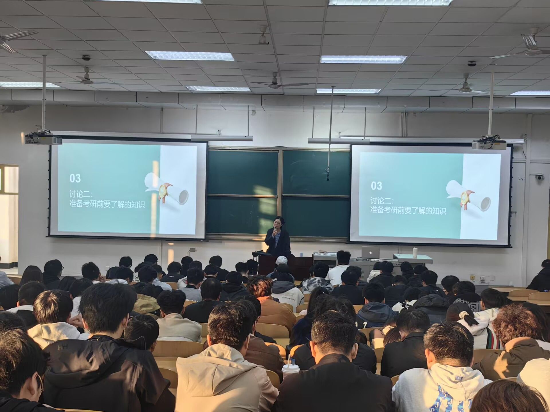 考研輔導老師李海霞為同學們帶來了一場內容詳實、富有啟發性的講座。她從社會發展需求、個人價值提升、職業發展前景等多個維度,深入剖析了考研的重要性與優勢。同時,她結合多年指導經驗,為同學們系統講解了考研準備期間的關鍵環節,包括院校專業選擇、復習策略制定、時間管理方法以及心態調整技巧等,為同學們提供了考研就業的方向性指引。同學們紛紛表示,通過講座,受益匪淺,要提前做好職業規劃,做到就業考研兩手抓。