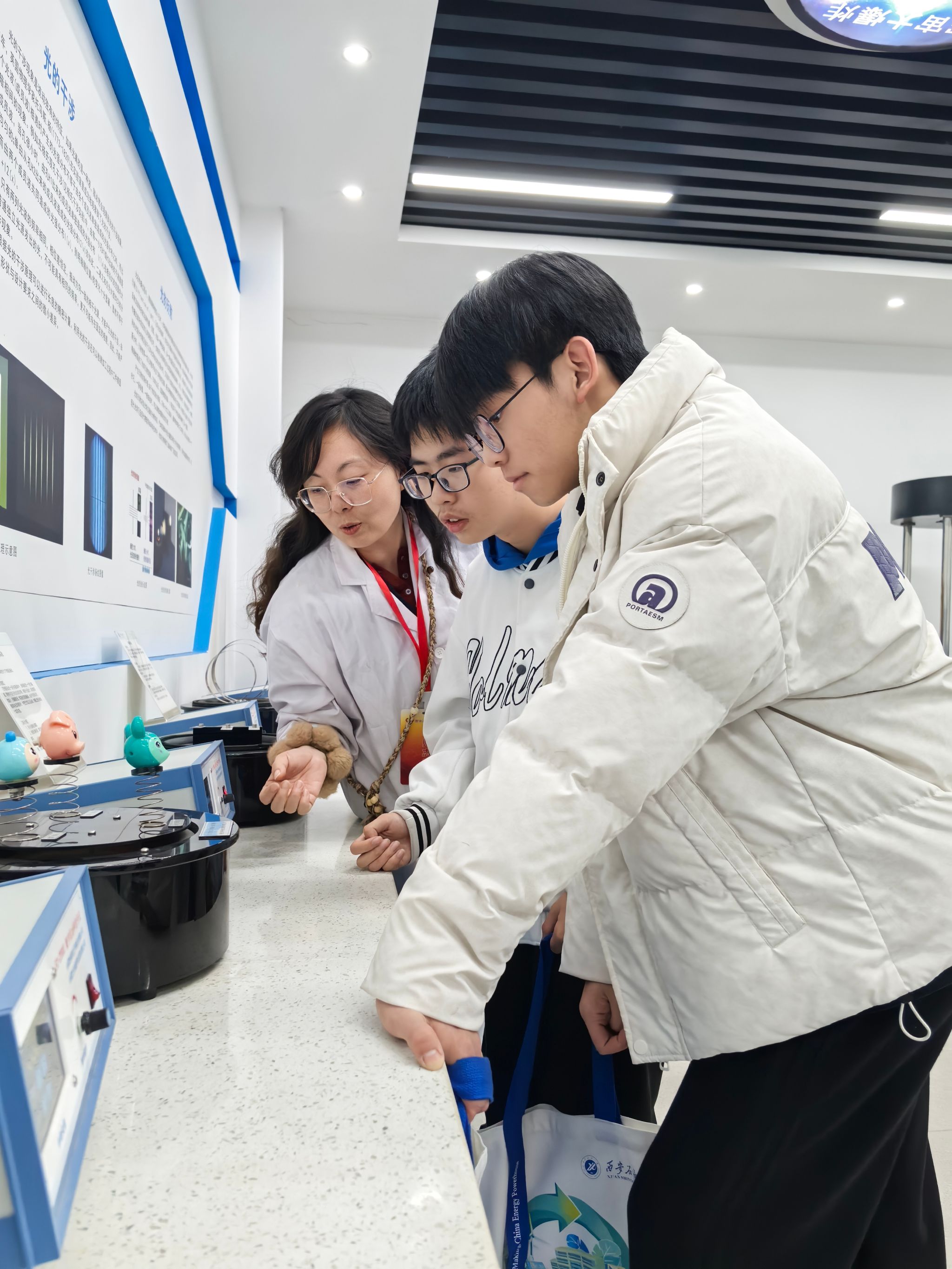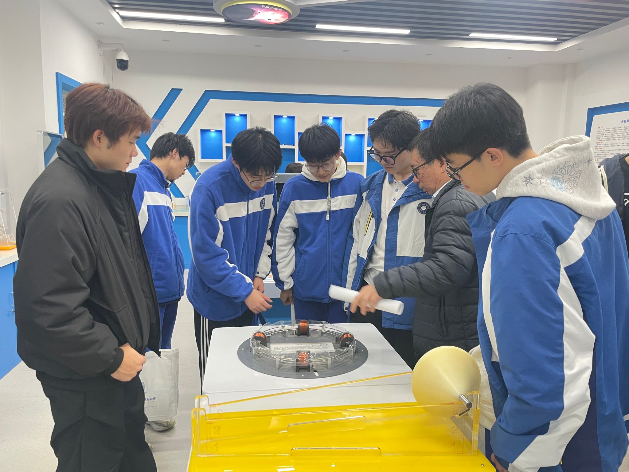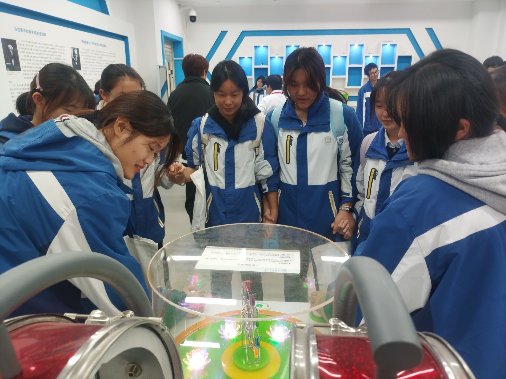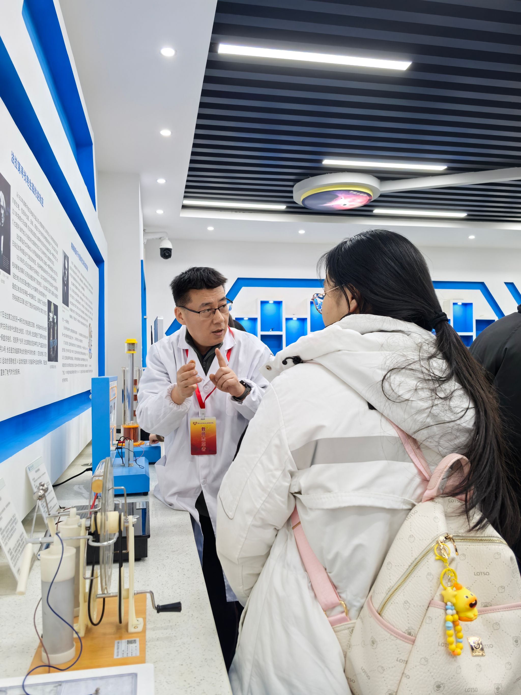 研學活動第二站來到理學院物理演示實驗室。物理演示實驗室是陜西省科普教育基地,是集圖像演示、實物操作等功能為一體的開放性實驗室,涵蓋了力學、電磁學、光學、熱學等方面知識。在理學院師生講解員的耐心講解和示范下,同學們依次參觀并親身體驗了一系列精彩的物理實驗。從靈巧的機械裝置,到神奇的電磁感應;從熱現象的微觀奧秘,到光和影的奇幻世界,每一個實驗都讓同學們驚嘆不已,深深感受到了物理世界的無窮魅力。這些精心設計的演示實驗,不僅激發了學生對物理學奧秘的好奇心與探索欲,更為大家搭建起了一座通往科學殿堂的橋梁,讓物理之美躍然眼前,深入人心。