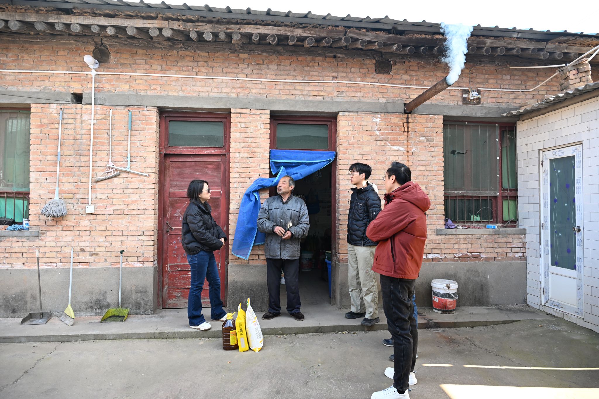 隨后,慰問組深入走訪了學院結對幫扶的農戶家庭。在結對戶肖付華家中,慰問組關切詢問了67歲空巢老人肖付華的生活狀況,得知其子女均在外省,本人患有冠心病需長期服藥,已喪失勞動能力;在結對戶楊佰林家中,潘娜與70歲的楊佰林夫婦促膝長談,了解到老兩口均患有慢性疾病,每月藥費支出不小,子女在西安務工,小孫女在讀高中,家庭經濟主要依靠子女接濟。慰問組為兩戶家庭均送上了大米、面粉、食用油等生活物資,并鼓勵他們堅定生活信心,把日子過得越來越好。