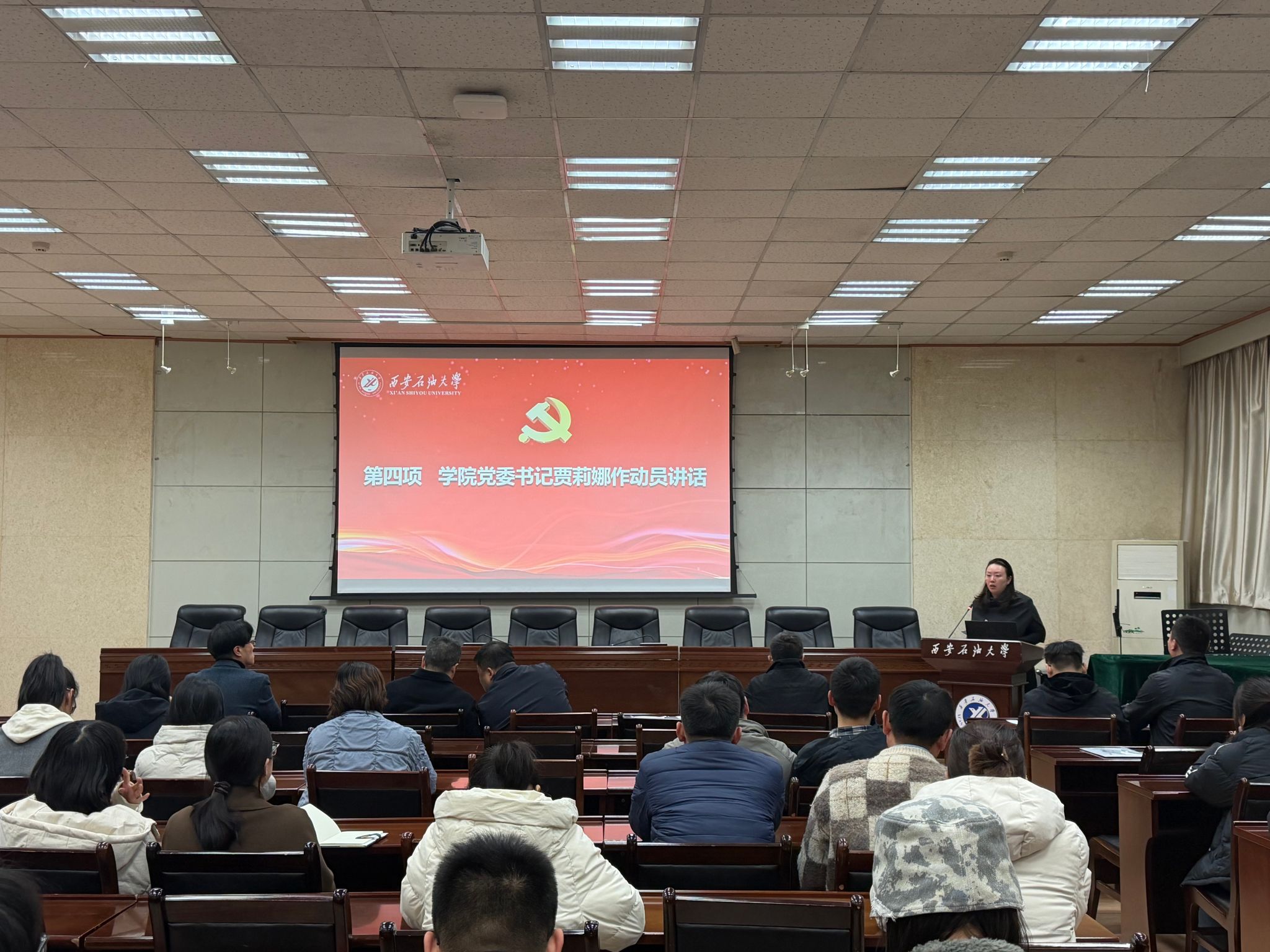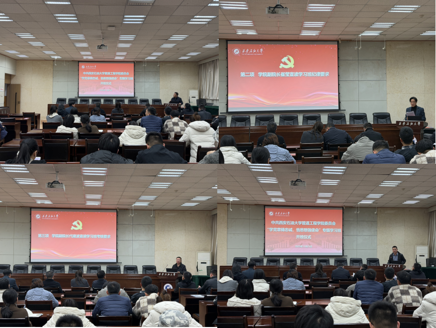 為深入學習貫徹黨的二十屆四中全會精神,落實學校第三次黨代會精神,全面提升基層黨組織建設質量,強化二級學院的政治屬性和育人責任,促進黨建和中心工作融合互促,重點提升教師特別是黨員教師在教學、科研、管理和學習中的模范帶頭作用,結合深入貫徹中央八項規定精神學習教育工作安排,11月21日,管道工程學院黨委在雁塔校區第三會議室舉辦了“學黨章鑄忠誠,悟思想強使命”專題學習班開班儀式,學院班子全體成員、全體教職工、研究生黨員代表參加了會議。學院學生工作辦公室主任孫劍秋主持會議。