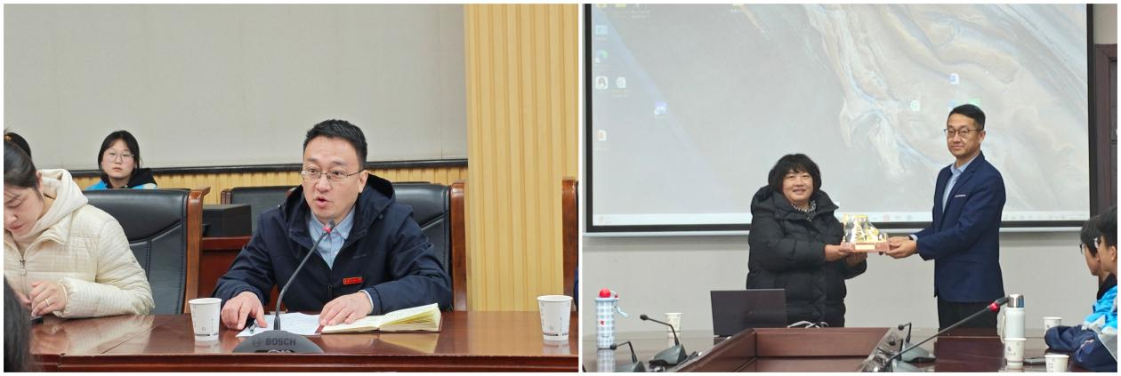 上午10時,活動在圖書館東門階梯合影中拉開序幕。在圖書館第二會議室,大家共同觀看西安石油大學宣傳片,全面了解學校的發展歷程、學科特色與育人成果。在歡迎儀式上,電子工程學院教學副院長任志平致歡迎辭,對岳廟高級中學師生的到來表示熱烈歡迎,并簡要介紹了學院的基本情況與辦學優勢。隨后,電子工程學院黨委副書記芮執根代表學院向中學師生贈送抽油機模型,象征著石油工業精神的傳承與兩校友誼的延續。