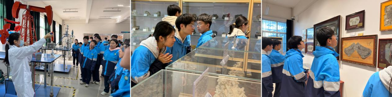 隨后,中學師生前往電子工程學院電氣工程及其自動化實驗室和石油科普基地進行實地參觀,大家依次參觀了電力系統綜合實驗室、電力系統調度及仿真實驗室、鉆井實訓室、地質標本實訓室、采油實訓室等多個實踐教學場所,近距離觀摩了油氣分布沙盤、集輸煉化設備等教學模型。通過講解員的細致解說,同學們對石油勘探、開采、加工等環節有了更加直觀的認識,也對現代石油工業的技術發展與實踐應用產生了濃厚興趣。