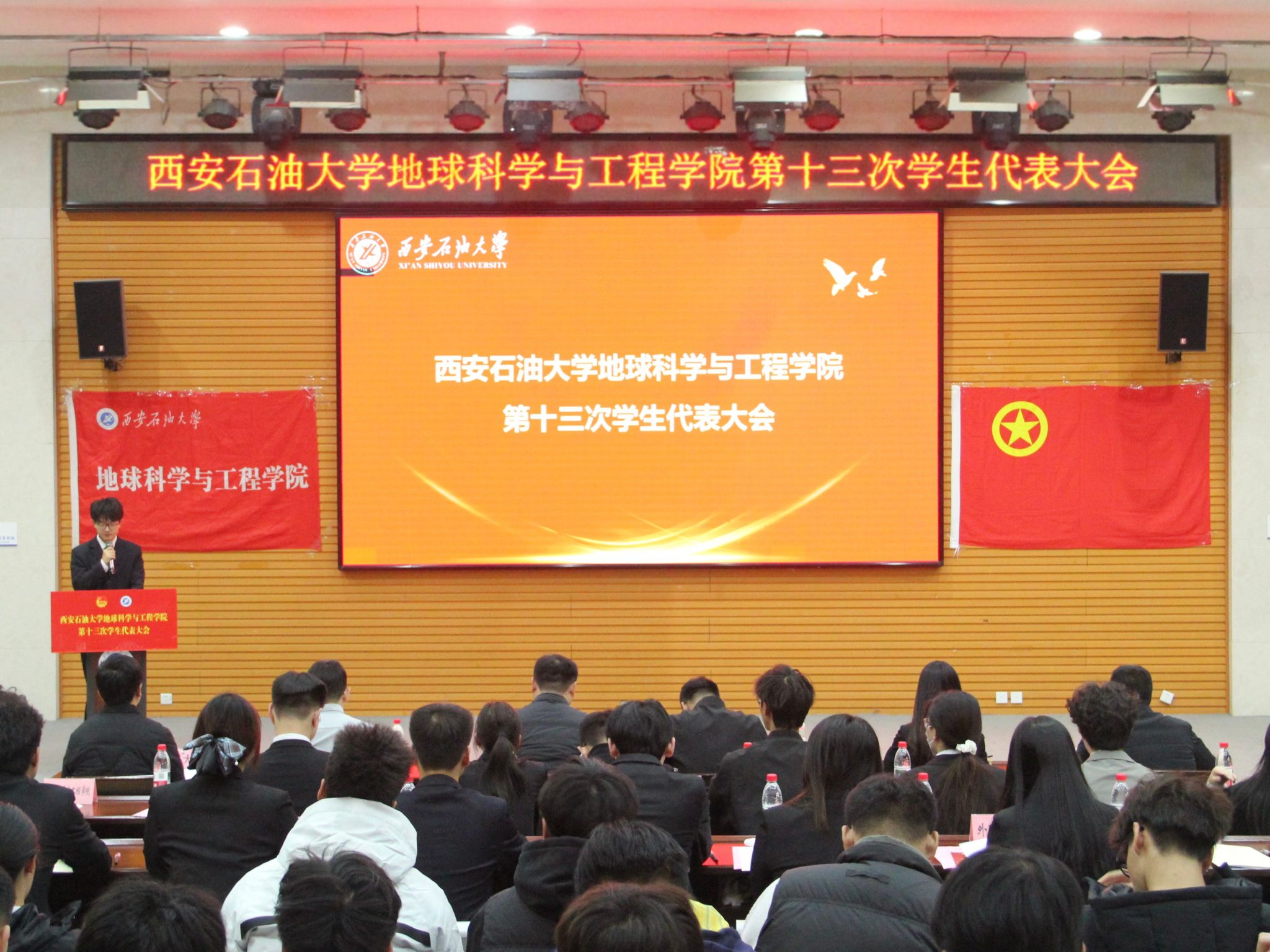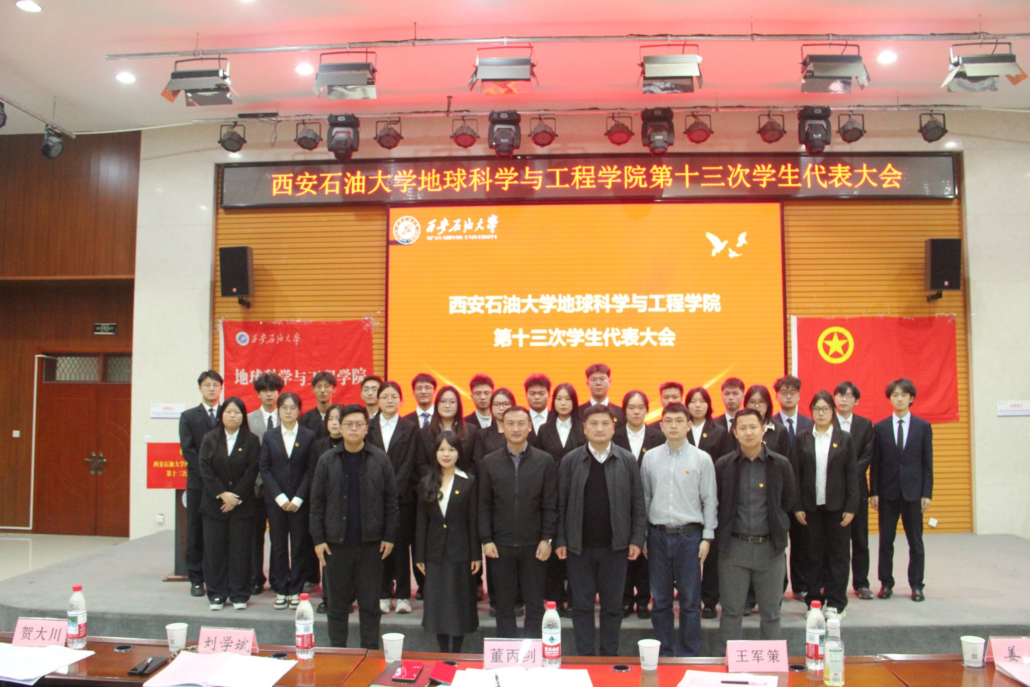 2025年11月26日下午,地球科學與工程學院第十三次學生代表大會在鄠邑校區崇文樓118報告廳順利召開。校團委副書記王軍策,學院黨委副書記董丙劍、團委書記姜楠、學生會指導老師劉學斌和各年級團總支書記及112名學生代表參加了此次會議。應邀出席此次會議的還有來自兄弟院系的團委、學生會代表們。