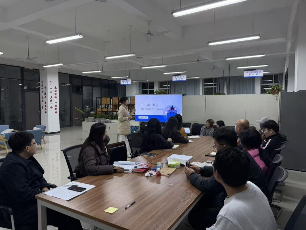 為提升輔導員隊伍的心理育人水平與學生工作實效,2025年11月27日晚,學生工作部(處)在鄠邑校區開物樓117辦公室舉辦第十八期輔導員交流研討沙龍。本次沙龍由經濟管理學院李夏凝擔任主講,圍繞“‘心’‘新’相印——心理技巧在輔導員工作中的應用”這一主題進行了深入分享與交流。新能源學院黨委副書記袁家寶及各學院輔導員代表參與了此次活動。