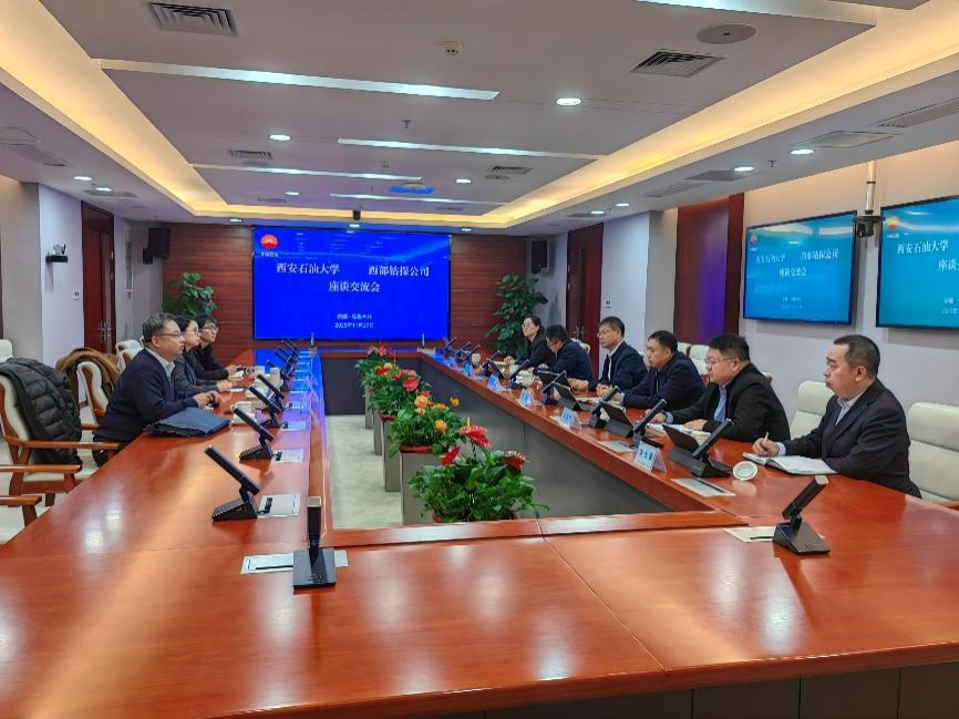 在西部鉆探工程有限公司總部交流中,企業首席技術專家萬云祥詳細介紹了公司科技創新平臺與產業布局,人力資源部(組織部)部長陳培濤就畢業生招聘、學生暑期實習及碩博聯合工作站建設等方面提出了合作愿景。科技信息部部長王新、工程技術研究院副院長喬東宇進一步分享了生產實踐中面臨的技術挑戰,強調了校企合作在解決企業重大需求方面的作用。潘娜介紹了學院整體情況與人才培養成果,康正明重點展示了電子工程學院10項典型科研成果,劉科滿分享了隨鉆測量等技術的最新研究進展,雙方圍繞人才培養、技術需求、產學研協同發展達成了初步意向。