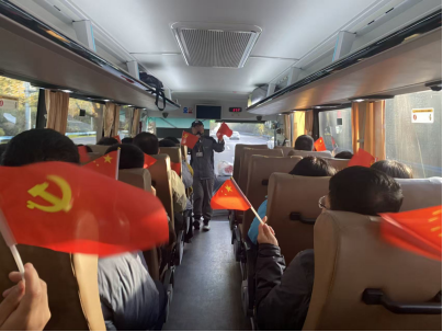 清晨,全體參與人員統一乘車前往渭南華州區。途中,車上開展了簡要的行前學習,大家共同回顧了渭華起義的歷史背景與精神內涵。在講解員的帶動下,車廂內響起嘹亮的紅歌聲,《歌唱祖國》《我和我的祖國》《我為祖國獻石油》等經典旋律依次唱響,激昂的歌聲一路相伴,為此次紅色學習之旅奠定了莊重而熱烈的情感基調。