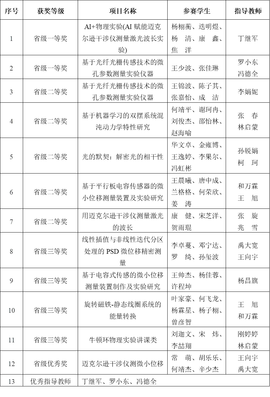 附2:2025年第十一屆全國大學生物理實驗競賽(創新)獲獎名單