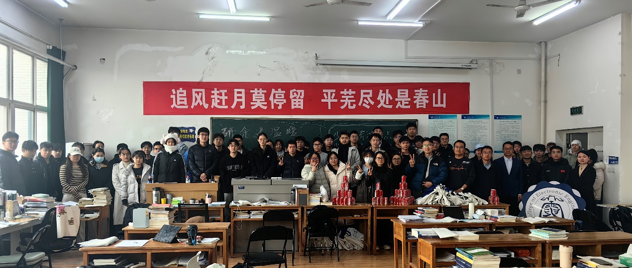 為切實關心關愛2026屆考研學子的備考狀態,傳遞學院的深切關懷與殷切期望,12月9日上午,電子工程學院在鄠邑校區行知樓419考研自習室舉行了2026屆考研學子慰問活動。學院黨政領導班子成員及2022級輔導員參加慰問,為學子們加油鼓勁。