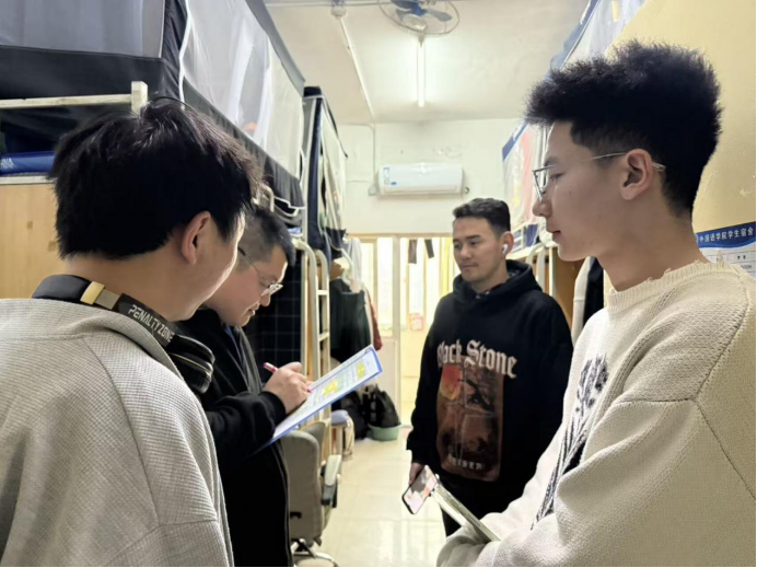 共建文明宿舍,營造安全小家。宿舍是學生生活的重要場所,也是安全管理重點區域。12月8日下午,輔導員對宿舍進行了走訪和檢查,著重排查了違規電器、存放易燃易品等安全隱患,提醒學生要做到人走斷電、鎖好門窗,切實防火防盜等安全隱患,督促學生即查即改。通過排查,引導學生遵守管理規定,將安全教育融入日常,共創安全、溫馨居住環境。