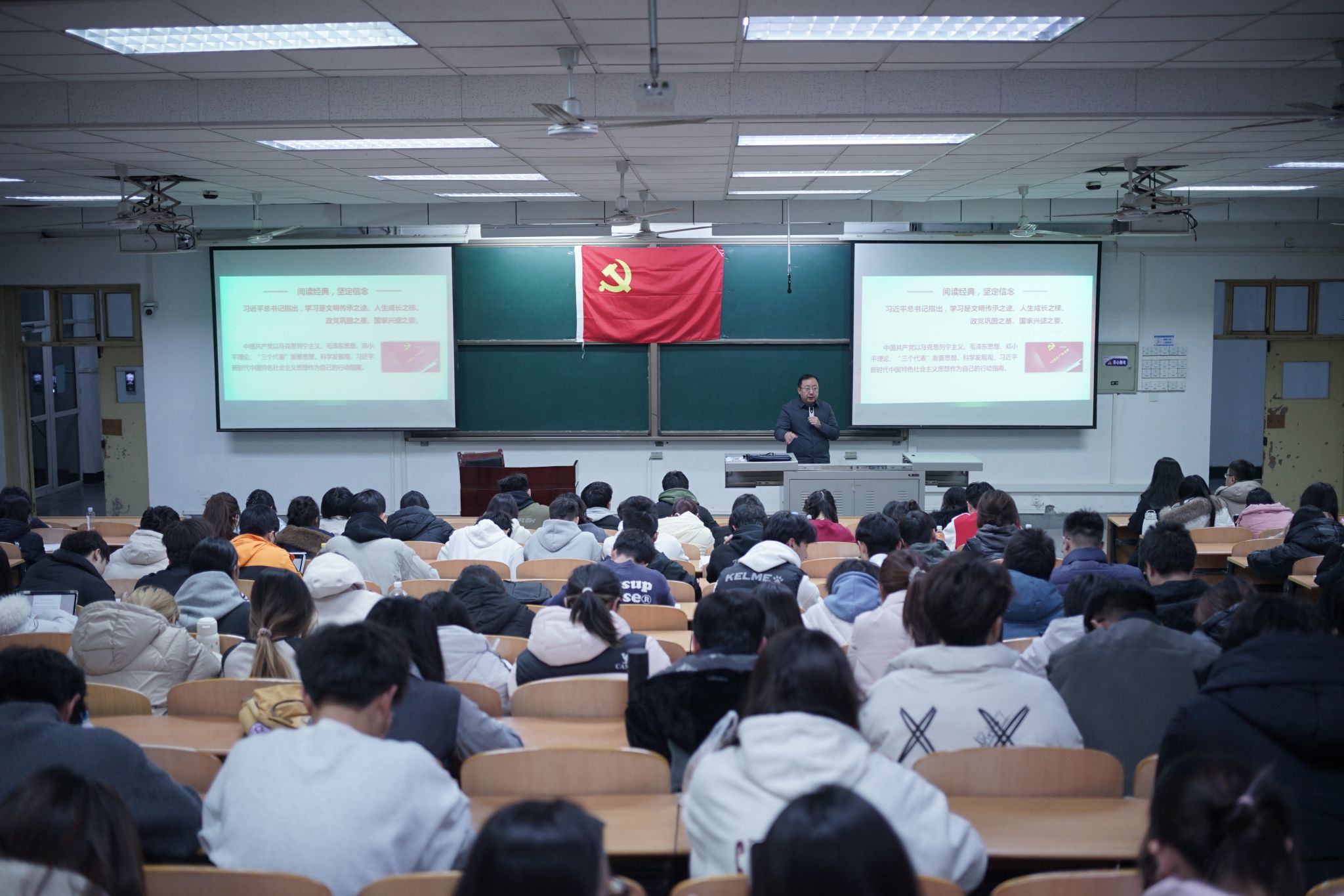 種宇宏從《共產黨宣言》誕生的歷史背景談起,對《共產黨宣言》展開了深入細致地解讀。他概括講解了《共產黨宣言》的主要內容和基本原理,全面系統地闡述了馬克思主義對階級斗爭、無產階級革命和未來社會形態的看法。在講述《共產黨宣言》對中國社會和中國先進知識分子的影響時,他以國家領導人和名人閱讀學習《共產黨宣言》感悟后形成的新思想為時間線,講述了馬克思主義中國化時代化的歷史進程。他闡述了重溫《共產黨宣言》的當代價值和歷史意義,引導同學們堅定理想信念,牢記歷史使命,勿忘人民囑托,在新時代傳承和踐行《共產黨宣言》的精神內涵,真正做到在政治上、思想上、行動上與黨中央保持高度一致,用青春書寫新時代堅持和發展中國特色社會主義新篇章。