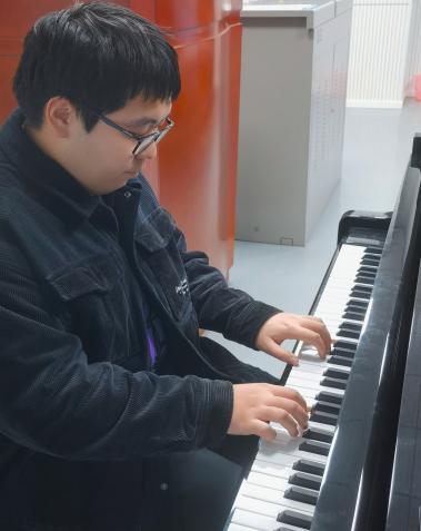 我選擇演奏的曲子是《Ballads at sunset》。這首華爾茲風格的樂曲,聽起來優雅又溫柔。從我的鋼琴選修課開始接觸鋼琴,到老師給我們一步步講如何識譜,彈奏,以及指法,到最后在琴房上手練習。雖然日復一日的練習略有乏味,但這是我鋼琴學習中不可或缺的一步。鋼琴課不但讓我學會了一種樂器,更讓音樂成為了我生活中的調色盤。真心推薦大家都可以來體驗張老師的鋼琴課,相信你們也會在黑白琴鍵之間,找到屬于自己的生活節奏!