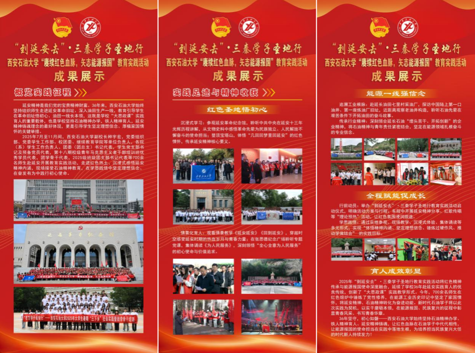 36年來,學校始終堅持組織師生走進延安革命舊址、深入油田生產一線,教育引導學生在革命舊址悟初心、油田一線長本領,這既是我校“大思政課”實踐育人的重要載體,也是我校堅持石油精神辦學,鐵人精神育人,延安精神鑄魂理念的最好體現,更是引導學生堅定理想信念、厚植家國情懷的關鍵舉措。