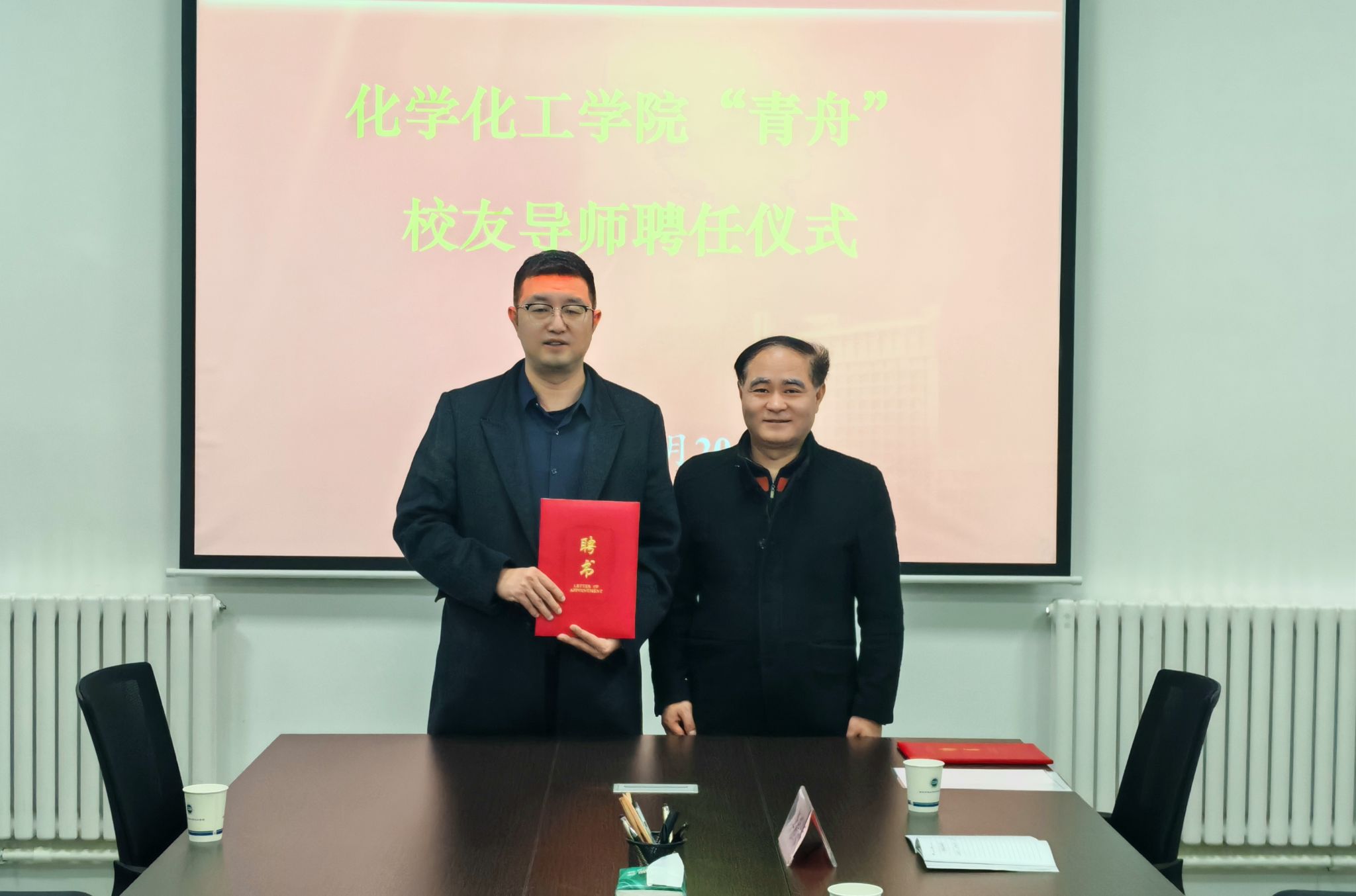上午,學院黨委書記孫會珠、副書記喬曉,在雁塔校區學院231會議室同兩位校友進行了座談交流,孫會珠向兩位校友介紹了學院近幾年的發展情況以及在科學研究、人才培養、隊伍建設、合作交流等方面取得的成績,并為兩位校友頒發了“青舟”校友導師聘書。喬曉結合學院學生工作實際,介紹了實施“青舟”校友導師計劃的目的和意義。隨后,陪同校友參觀了我院現代分析檢測中心和Cape油氣增產技術研究所,并就雙方相關檢驗檢測和技術服務方面開展合作進行了深入交流。