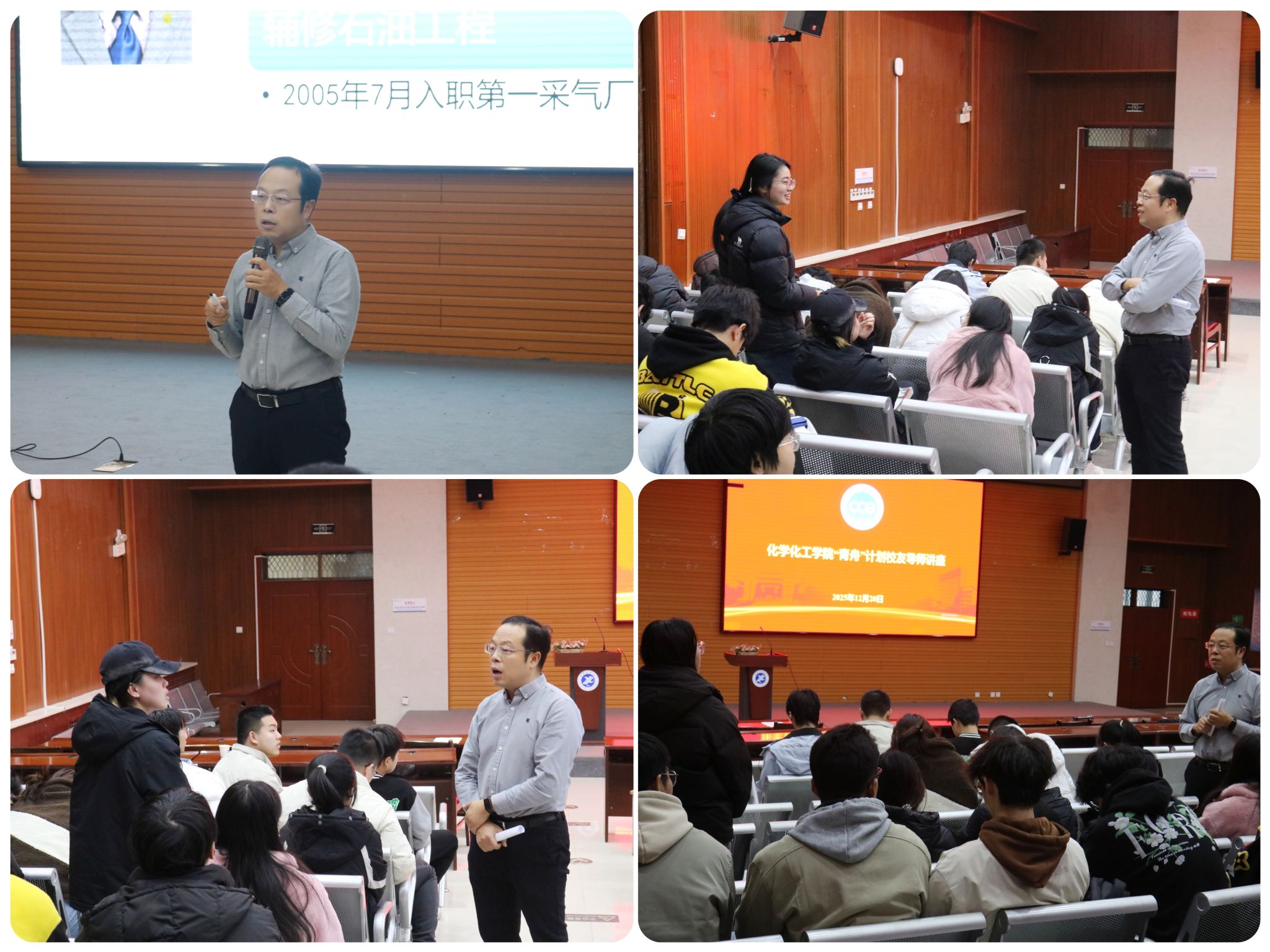 分享結束后,互動環節瞬間升溫:化工現場安全如何保障?跨崗位發展需要做哪些準備?面對同學們的熱切提問,兩位校友結合實際經驗一一作答,幽默的表達、真誠的建議讓現場掌聲不斷。