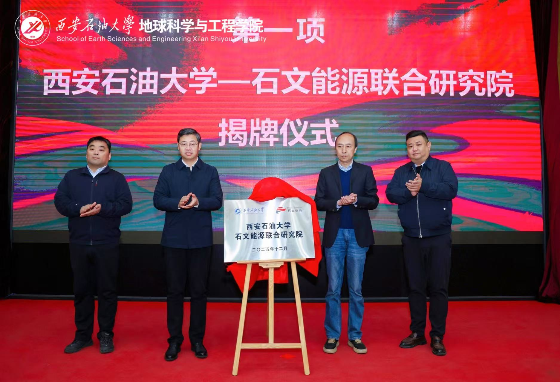 共建平臺,驅動產教融合走深走實。在前期充分溝通及校友工作與合作交流處的協調推動下,學院與西安石文軟件有限公司已完成戰略合作協議簽署。會上,王進富與張小會共同為“西安石油大學—石文能源聯合研究院”揭牌。該研究院的成立,是學院探索“院為實體”改革、打造產學研用一體化協同創新平臺的關鍵一步。