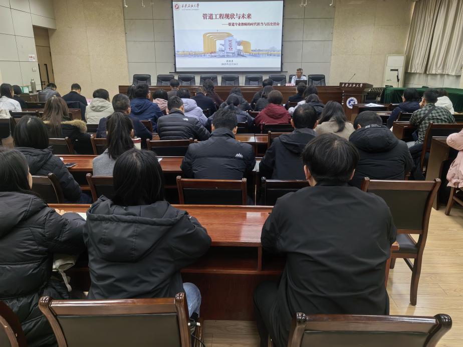 會上,張驍勇對全院師生從專業視角分別按照油氣儲運、安全工程、土木工程三個方向各提出三點希望:一是“鑄魂”,重塑課程思政新內涵。對于油氣儲運專業,要在講授“全國一張網”格局、跨國管道戰略意義時,深刻揭示其對于國家能源自主、地緣政治博弈的核心價值,培養學生作為 “國家能源系統調度師” 的格局與擔當。對于土木工程專業,要在講授管道穿跨越工程、地質災害防治時,弘揚 “攻堅克難、打造不朽工程” 的工匠精神,將“隱蔽工程、百年品質”的職業倫理深植學生心中。對于安全工程專業,要深刻闡釋管道安全是 “總體國家安全觀”在能源領域的具體體現,將安全職責從“避免生產事故”提升到 “捍衛國家經濟生命線和公共安全” 的崇高境界;二是“強技”,更新知識與能力體系。對于油氣儲運專業,教學重點要從“工藝設計”向 “系統優化” 和 “智能決策” 轉變,培養學生運用大數據和AI工具解決復雜管網問題的能力。對于土木工程專業,要教導學生不僅關注“如何建得成”,更要思考“如何建得智能、如何感知自身狀態”。對于安全工程專業,要教授基于大數據和人工智能的風險預測預警、基于數字孿生的應急推演與決策、復雜系統韌性評估等現代安全工程方法;三是“力行”,創新教學與科研實踐。對于油氣儲運專業,要開發基于數字孿生的管網模擬仿真教學平臺,讓學生在人機互動中學習智能調度,主動對接國家管網“七大方向”,在摻氫輸送、大型管網仿真軟件自主化等關鍵領域開展應用型研究。對于土木工程專業,繼續推廣BIM與 GIS在管道設計課程中的深度融合應用,聚焦管道新型材料、高效智能建造技術等領域,推動科研成果向工程標準和教學案例轉化。對于安全工程專業,要利用虛擬現實技術構建管道泄漏、地質災害、網絡攻擊等沉浸式應急演練場景。圍繞國家管網“本質安全”方向,在管道裂紋智能識別與生長預測、多災害耦合致災機理、系統安全彈性恢復等前沿領域開展研究,為行業提供先進的理論和工具支持。