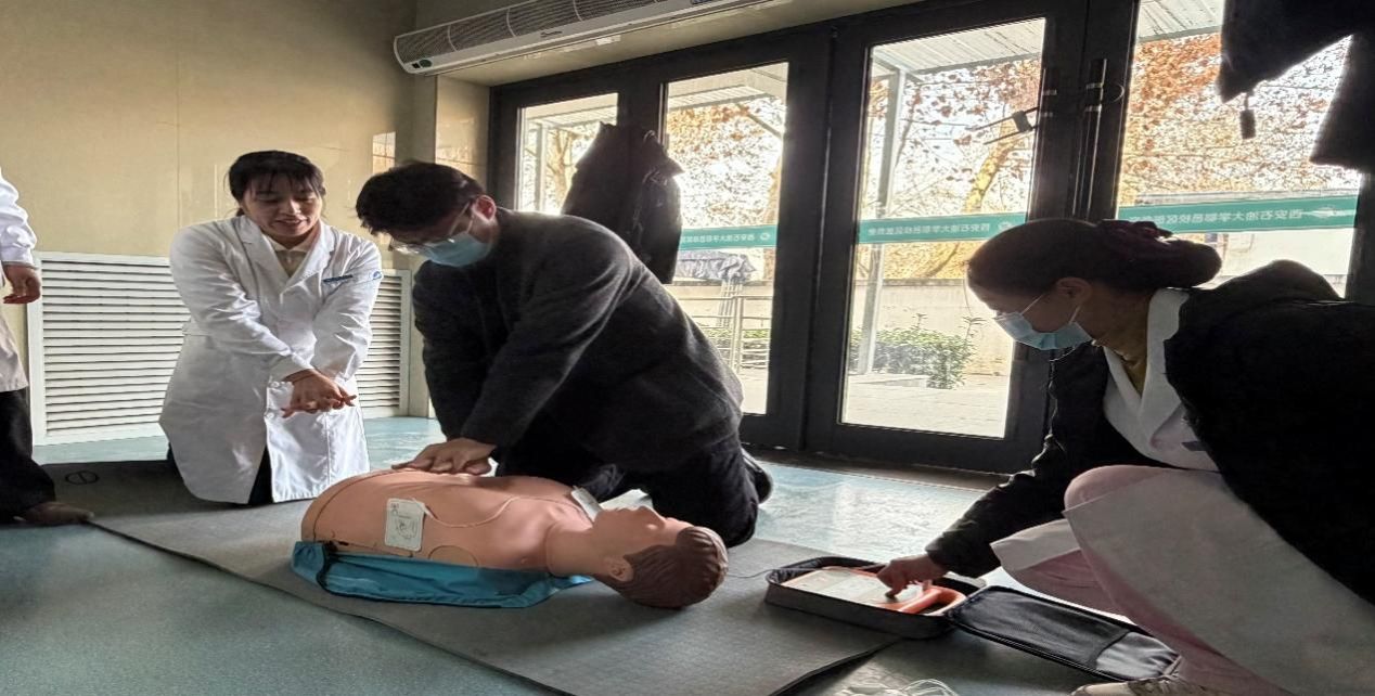 隨后,校醫院黨支部書記、副院長李文霞在開班儀式上強調,應急救護技能是筑牢校園安全防線的重要支撐,保衛人員、輔導員等教職工群體是應對校園突發狀況的“關鍵施救者”。她特別指出,學校已完成三個校區AED設備的全面布設,為校園應急救護工作筑牢了堅實硬件根基。她表示,校醫院將持續深耕急救知識普及與技能培訓工作,希望全體參訓學員認真鉆研學習,切實提升守護師生生命健康的實戰能力。校醫院副院長成怡敏宣布培訓正式開班。