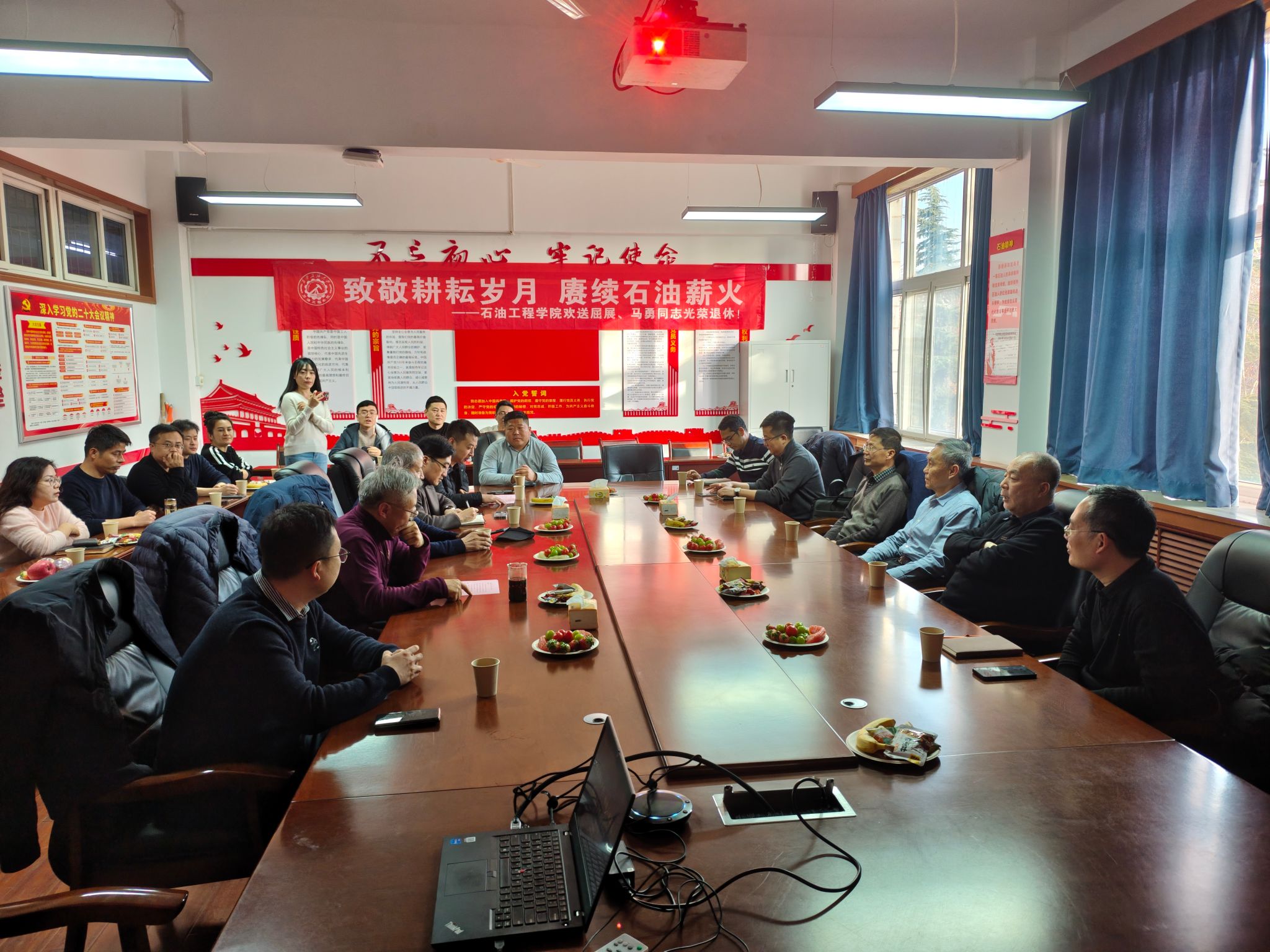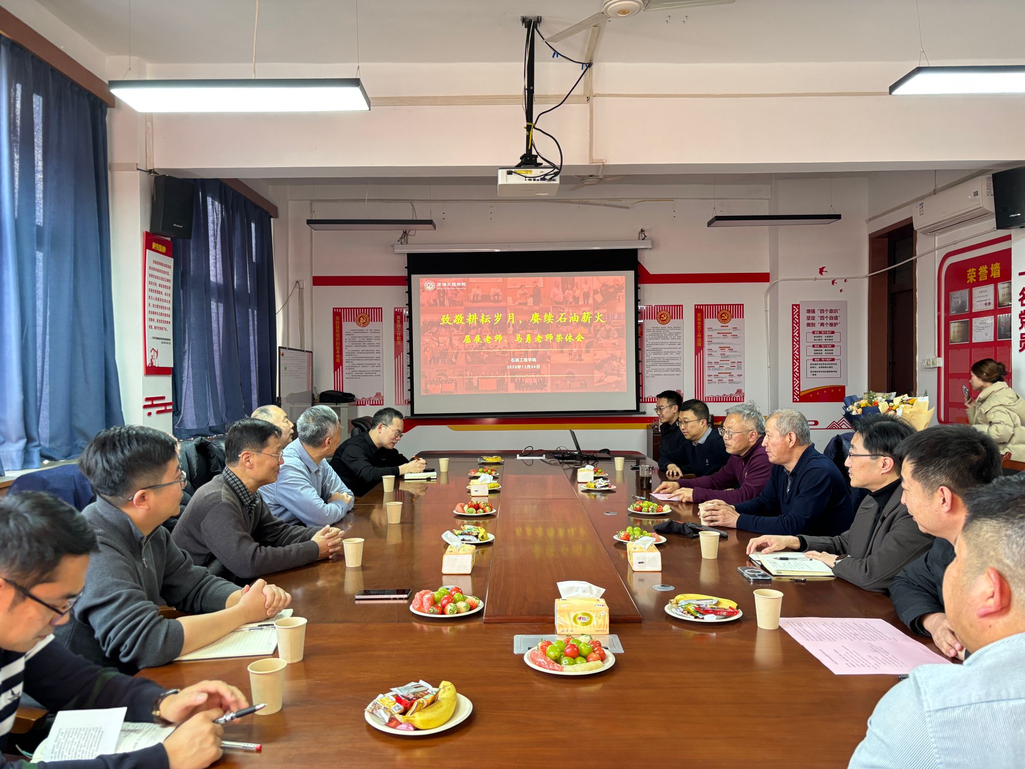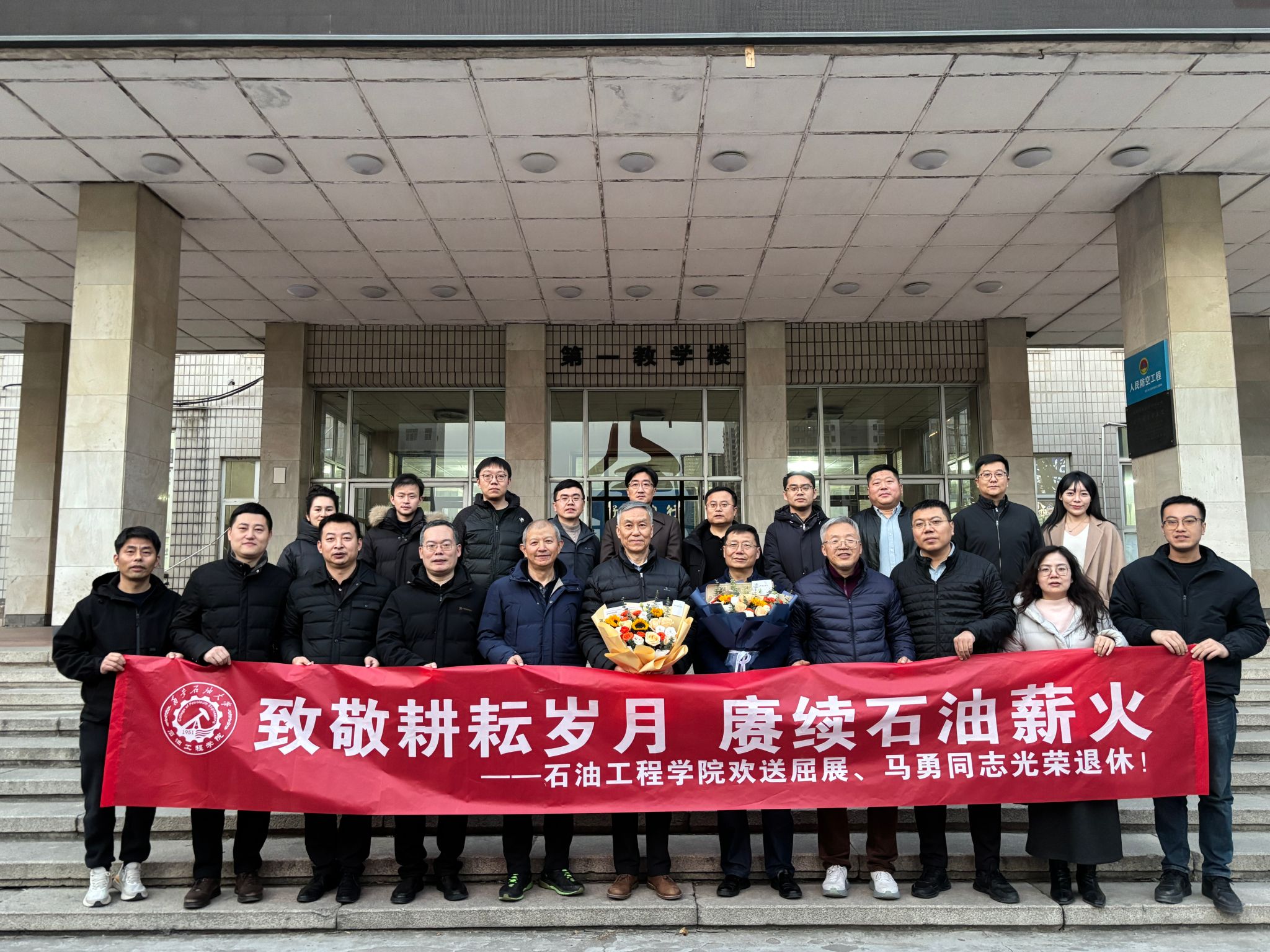 歲月如歌,薪火相傳。12月24日下午,石油工程學院于雁塔校區第一教學樓603會議室隆重舉行“致敬耕耘歲月,賡續石油薪火”主題榮休會,深情歡送屈展、馬勇兩位榮退教師。學院班子成員、退休教師代表、兩位老師往屆所帶學生和原任辦公室同事、學院教師代表齊聚一堂,共憶執教歲月,共話師恩情誼,共送美好祝福。