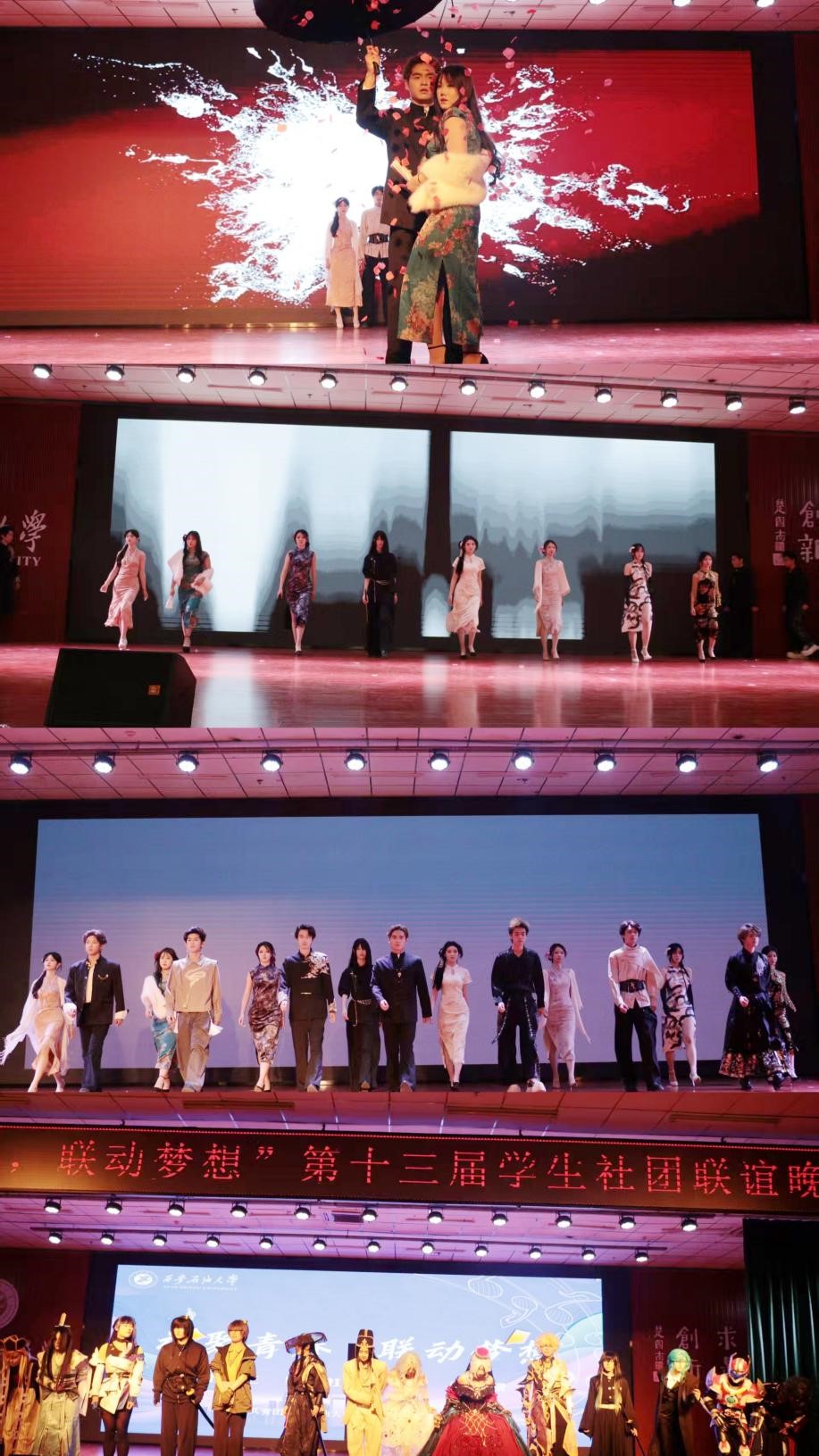 社團聯誼晚會在典雅優美的走秀節目中拉開序幕,身姿挺拔的表演者盡顯青春風采;活力四射的《attention》動感節奏瞬間點燃全場;樂隊表演《大石碎胸口》,搖滾力量震撼人心;舞蹈《煙雨江南》以柔美舞姿勾勒江南詩意;樂隊《第一天》用歡快節奏喚醒青春回憶;歌曲《如果呢》以細膩歌聲訴說青春憧憬;器樂合奏《云宮迅音》憑多樂器配合打造恢弘聽覺盛宴;舞蹈《FaSHioN》再次引爆現場,酷炫舞姿展現潮流態度;樂隊《曹操》以搖滾演繹歷史豪情;18人cos走秀展示二次元的獨特藝術;《世界》與《賤俠》組合舞蹈剛柔并濟,展現豐富層次;樂隊《還我蔚藍》用清新旋律傳遞環保理念;歌曲《平庸》以深情詮釋拒絕平庸的人生態度;樂隊《我的未來式》用積極歌詞鼓舞追夢勇氣;舞蹈《Low (feat. T-Pain)》熱情奔放,單人舞蹈《Funk》盡顯專業功底,《superstar》詮釋自信態度;舞蹈《famous》以高難度動作贏得陣陣掌聲;樂隊《free loop》營造溫馨氛圍,11人阿卡貝拉合唱《愛要坦蕩蕩》為晚會畫上圓滿句號。