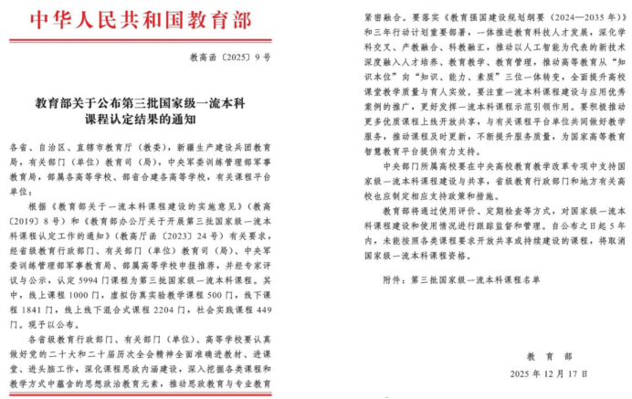 近日,教育部發布了《教育部關于公布第三批國家級一流本科課程認定結果的通知》(教高函〔2025〕9號),我院2門課程獲得認定,實現了課程建設的歷史性突破。“大學英語”課程同時獲批國家級線上一流本科課程與國家級線上線下混合式一流本科課程。截至目前,我院共獲批國家級一流本科課程2門、省級課程建設項目9門。