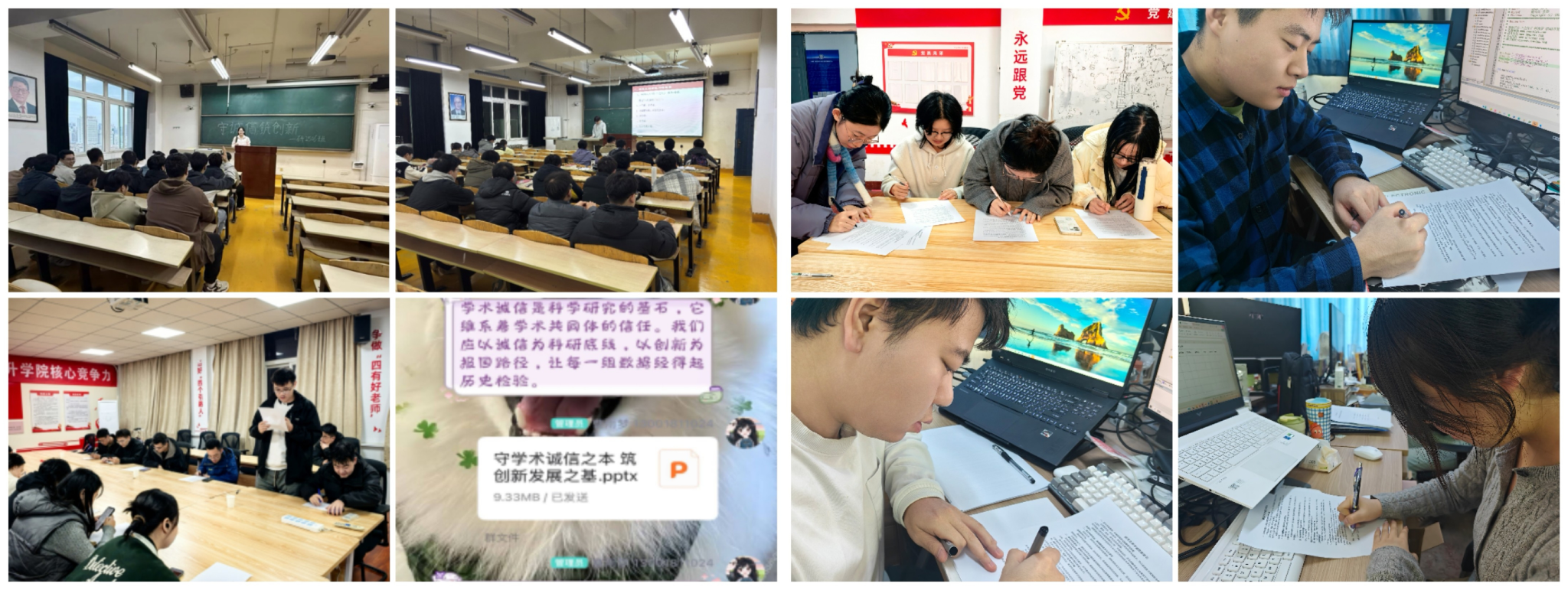12月1日—12日期間,組織各班召開學術誠信主題班團會,學習學術不端典型案例,簽訂《學術誠信承諾書》,強化研究生在數據采集、論文發表、專利申報等環節的誠信意識,筑牢科研道德防線。