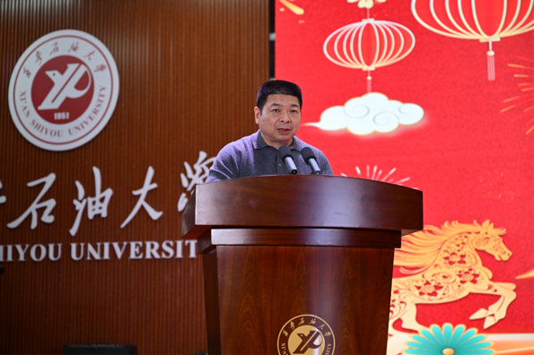 耿嶺代表學院向出席晚會的各位領導、嘉賓、師生致以誠摯問候與熱烈歡迎。他從黨團建設、師資隊伍、學科發展、教學科研、人才培養五個方面系統回顧了學院2025年取得的各項成績,并向全體同學提出三點期望:一要堅定理想、腳踏實地,在知行合一中錘煉真才實學;二要全面發展、錘煉能力,在成長道路上奮力奔跑;三要珍惜光陰、奮發有為,以昂揚姿態迎接未來挑戰。