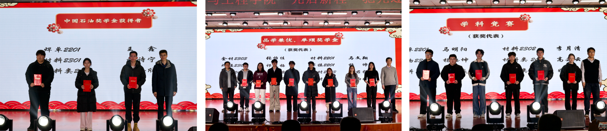 頒獎環節中,學院領導老師為國家獎學金、國家勵志獎學金、中國石油獎學金、品學兼優獎學金、單項獎學金及省部級以上學科競賽獲獎者代表頒發了榮譽證書。