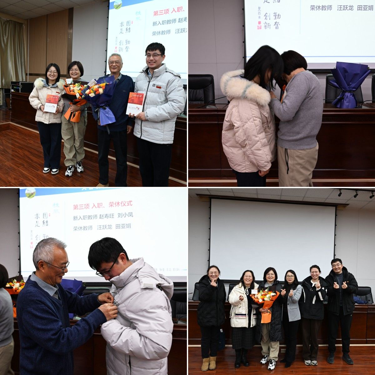 在大會(huì)第三項(xiàng)溫馨而莊重的入職與榮休儀式中,新入職教師趙壽旺、劉小鳳受到熱烈歡迎,退休教師汪躍龍、田亞娟在掌聲中接受敬意與祝福,并親自為新教師佩戴校徽、贈(zèng)送院史,象征學(xué)院精神薪火相傳。學(xué)院對(duì)榮休教師多年來(lái)為學(xué)院發(fā)展作出的貢獻(xiàn)表示衷心感謝,并鼓勵(lì)新教師傳承學(xué)院優(yōu)良傳統(tǒng),續(xù)寫事業(yè)發(fā)展新篇章。