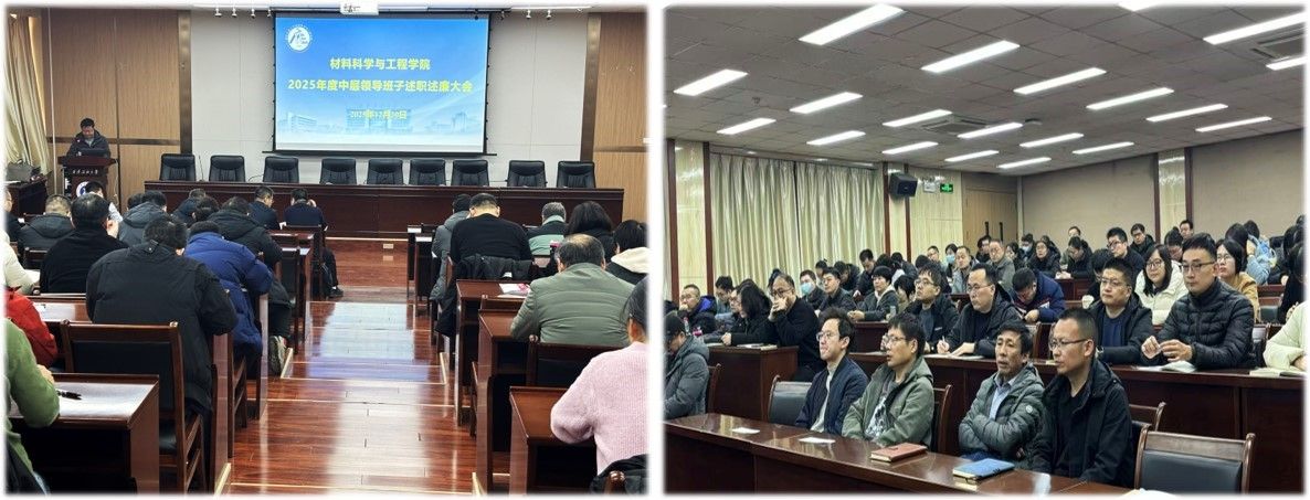 12月30日上午,材料科學與工程學院在雁塔校區(qū)第五會議室召開2025年度中層領(lǐng)導班子述職述廉大會。學院黨委書記耿嶺主持會議,全院教職工參加會議。本次會議以“凝心聚力謀發(fā)展,踔厲奮發(fā)新征程”為主題,全面回顧和總結(jié)了學院2025年在黨建工作、科研創(chuàng)新、學科建設、人才培養(yǎng)等領(lǐng)域取得的突破性進展,并對進一步推動學院各項事業(yè)高質(zhì)量發(fā)展作出動員部署。