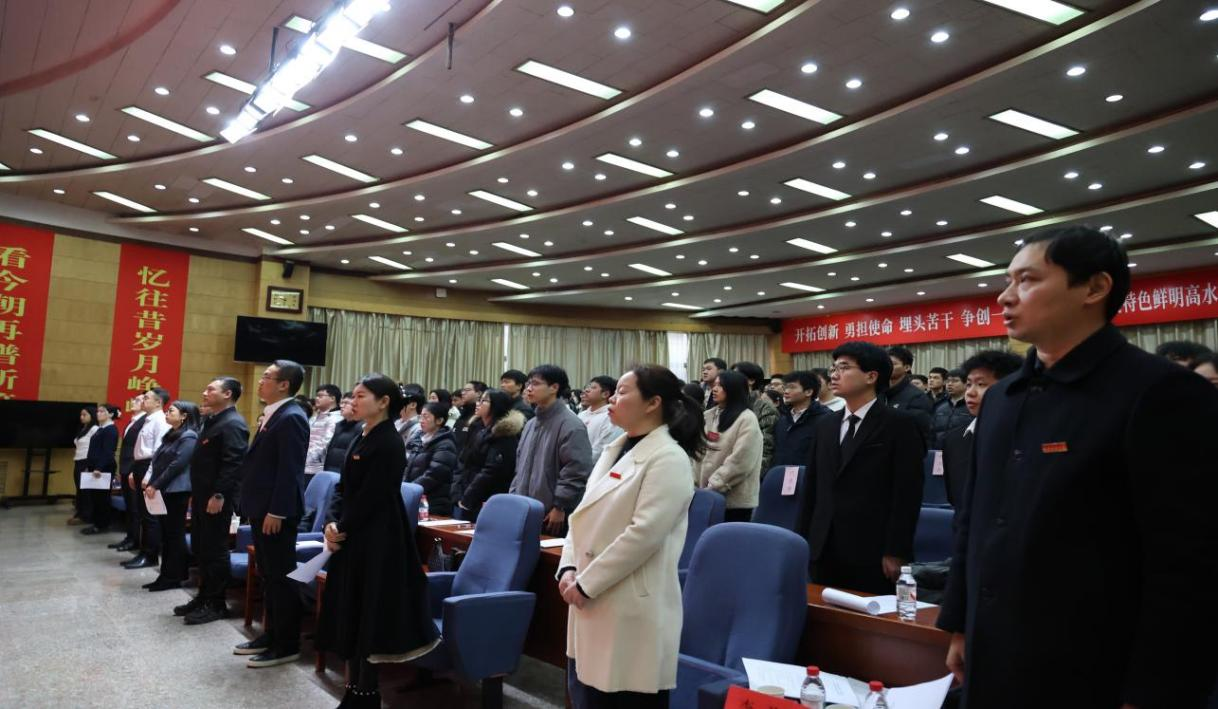 芮執(zhí)根致閉幕詞,他向第一屆研究生會委員會委員和全體研究生提出三點希望:一是強化思想引領(lǐng),提高政治站位;二是堅持服務(wù)為本,真正把同學(xué)放在心上;三是錘煉過硬本領(lǐng),矢志科技報國。最后,大會在全體人員齊唱《光榮啊,共青團》中圓滿落幕。