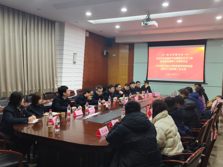 1月29日,中石油煤層氣有限責(zé)任公司工程技術(shù)研究院第三黨支部走進(jìn)校園,與新能源科學(xué)與工程系教工黨支部聯(lián)合開展了主題為“黨建引領(lǐng),業(yè)務(wù)互促”的支部共建活動(dòng)。此次活動(dòng)旨在通過(guò)校企深度聯(lián)動(dòng),探索黨建與科研教學(xué)深度融合的新路徑。煤層氣公司工程技術(shù)研究院院長(zhǎng)郝鵬程、一級(jí)工程師孫斌,新能源學(xué)院黨委書記顏庭星、石油工程學(xué)院副院長(zhǎng)張明、新能源科學(xué)與工程系教工黨支部書記王洋及雙方黨員代表等20余人參加此次活動(dòng)。
