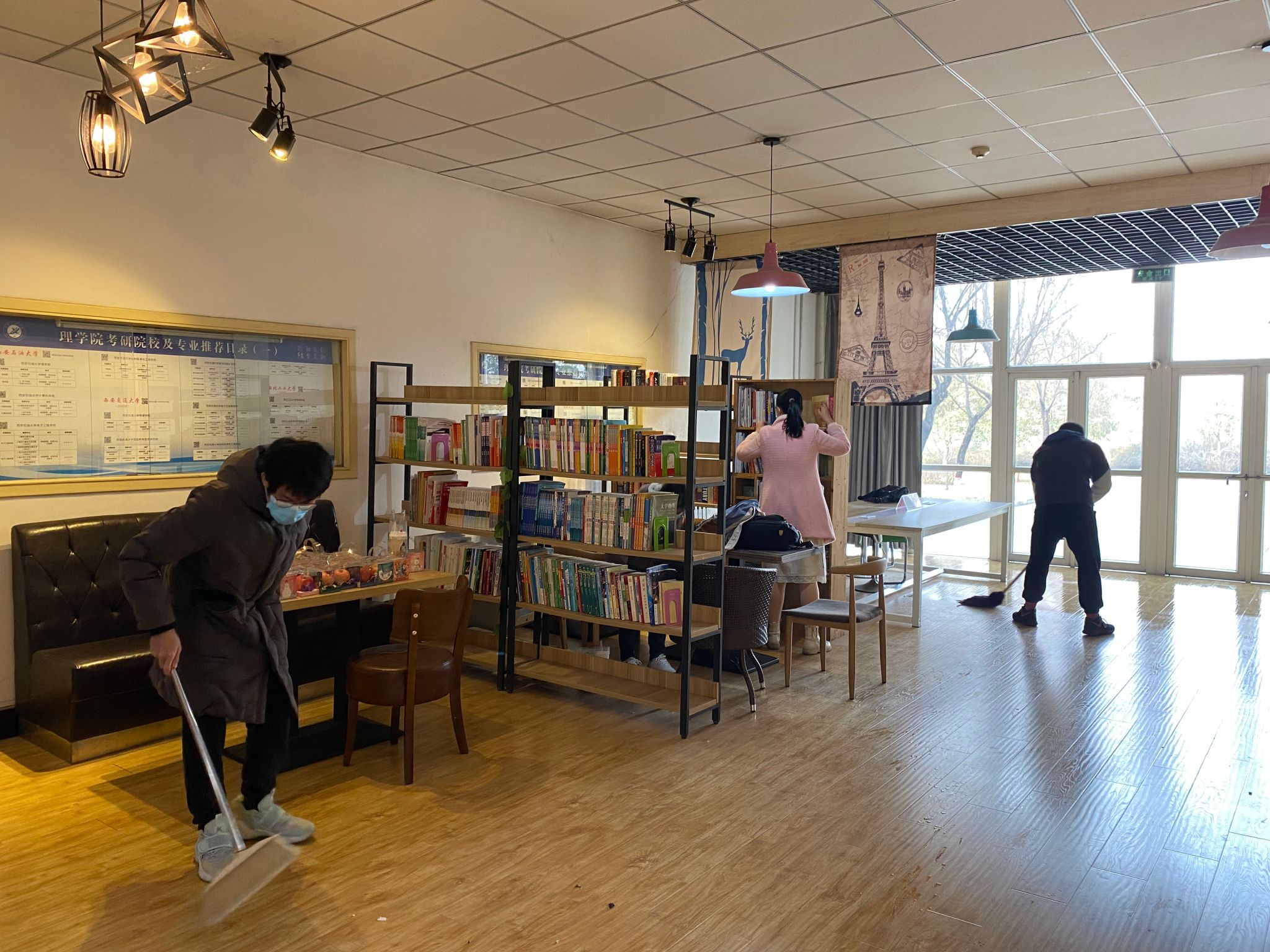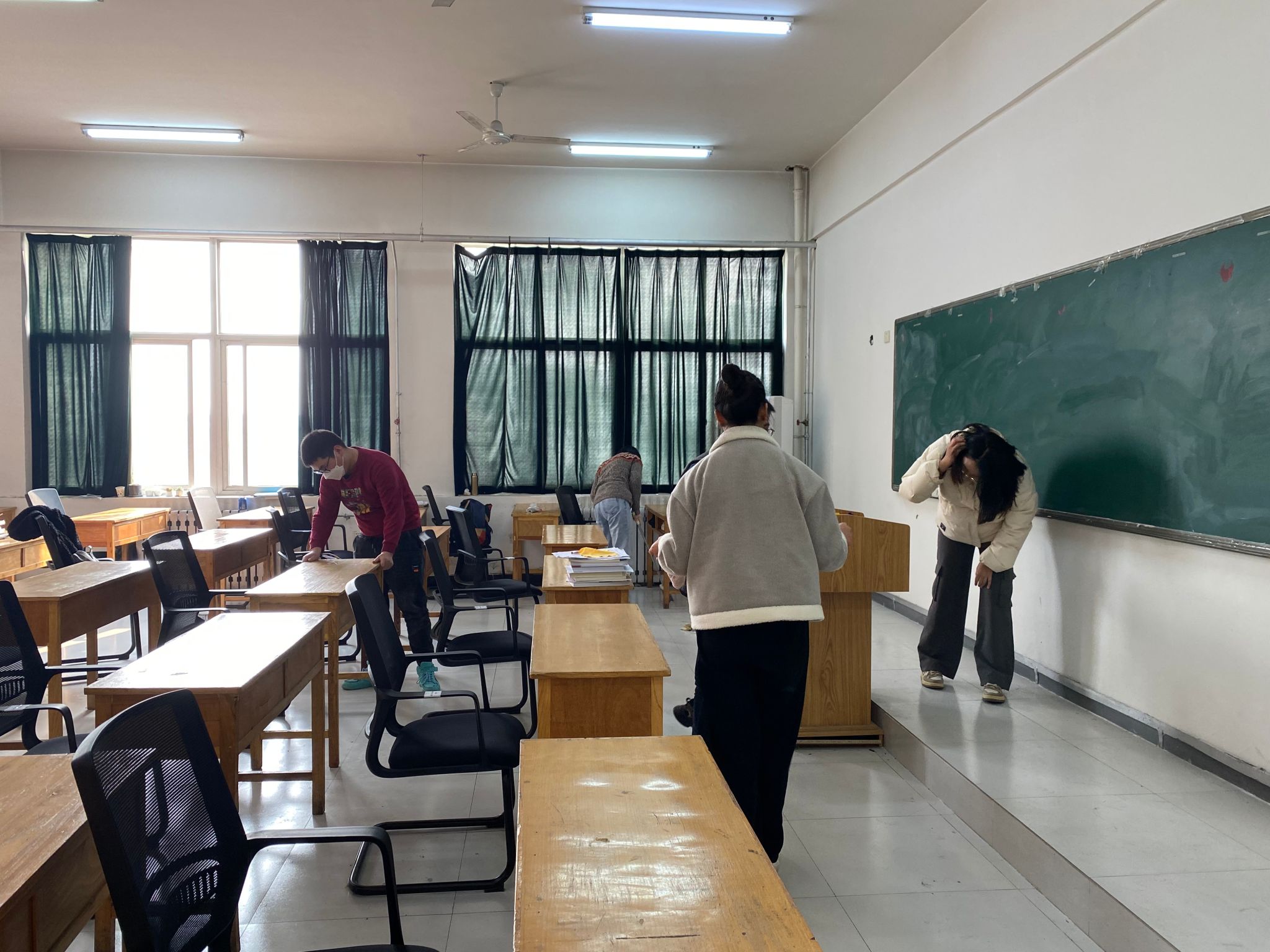 志愿者們在學院團委書記龐波老師的統(tǒng)籌安排下分成四個小組,分別奔赴不同的責任區(qū)域。在考研自習室,志愿者們仔細擦拭書桌、座椅,認真清掃地面的紙屑、灰塵,還貼心地為備戰(zhàn)考研復試的學長學姐整理了散亂的書籍資料;實驗室里,志愿者們小心翼翼地擦拭實驗儀器,清理實驗臺的試劑殘留;社團活動室和會議室里,志愿者們干勁十足地掃地、拖地、整理桌椅,不放過任何一個衛(wèi)生死角。經(jīng)過近幾天的辛勤勞動,原本略顯雜亂的環(huán)境變得煥然一新、整潔有序。