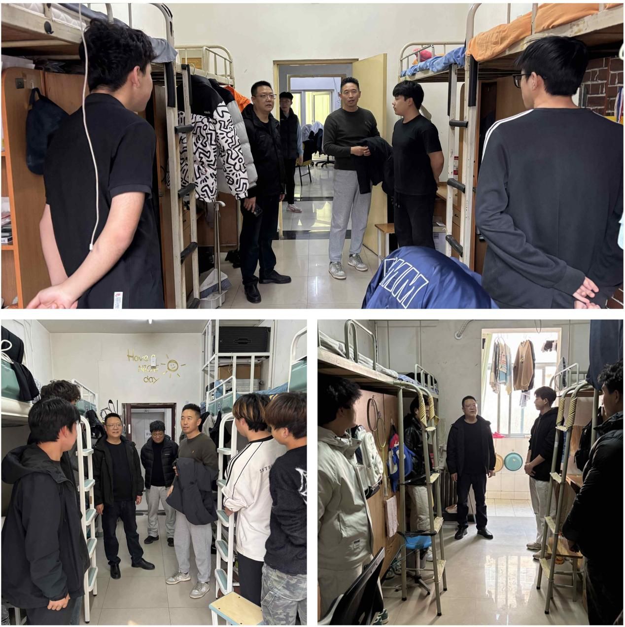 深入學(xué)生宿舍,排查整改安全隱患。學(xué)生宿舍是學(xué)生日常生活的重要場所,也是安全管理的重點區(qū)域。為切實消除各類安全隱患,3月4日,體育學(xué)院黨政班子帶隊深入每一間學(xué)生宿舍,開展全面細致的安全檢查。檢查內(nèi)容涵蓋用電安全、消防設(shè)施配備、門窗安全、衛(wèi)生狀況等多個方面。現(xiàn)場指導(dǎo)學(xué)生整改,并對存在安全隱患的宿舍建立隱患臺賬,確保問題及時發(fā)現(xiàn)、及時整改、不留死角。檢查期間,同時向?qū)W生講解防火、防盜、防詐騙等安全知識,提醒學(xué)生增強防范意識,注意人身和財產(chǎn)安全。
