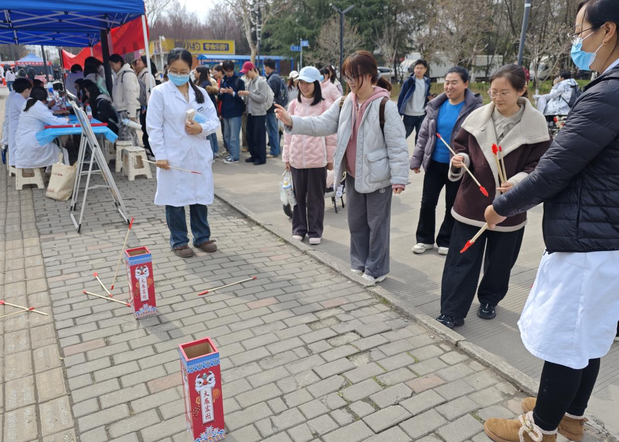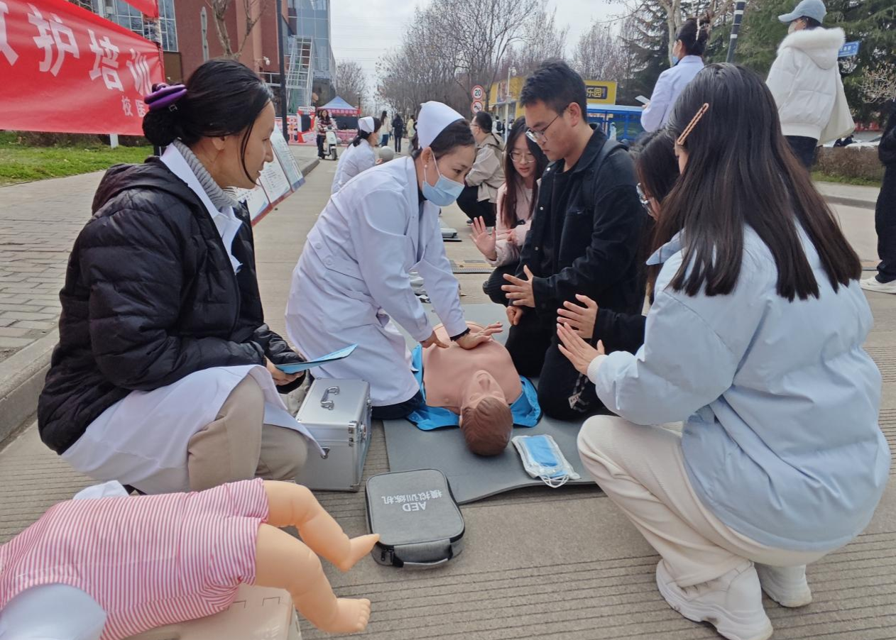 3月6日中午,鄠邑校區(qū)以“關愛女性健康,從呵護身心開始”為主題的專場健康咨詢在東區(qū)食堂對面舉行。通用環(huán)球中鐵西安醫(yī)院王娜娜、任朝偉、員海娟,及校醫(yī)院王凱、李佳晨、齊琳婧等專家組成健康咨詢團隊,提供女性常見病咨詢、中醫(yī)體質辨識、內分泌調理、腫瘤預防等服務。現(xiàn)場開設血壓、血糖免費檢測點,校醫(yī)院急救教育團隊聚焦校園場景普及心肺復蘇與海姆立克急救法,踐行“人人學急救,急救為人人”理念。活動增設趣味小游戲與健康知識問答環(huán)節(jié),為參與者發(fā)放精美小禮品,現(xiàn)場氛圍溫馨熱烈、秩序井然。