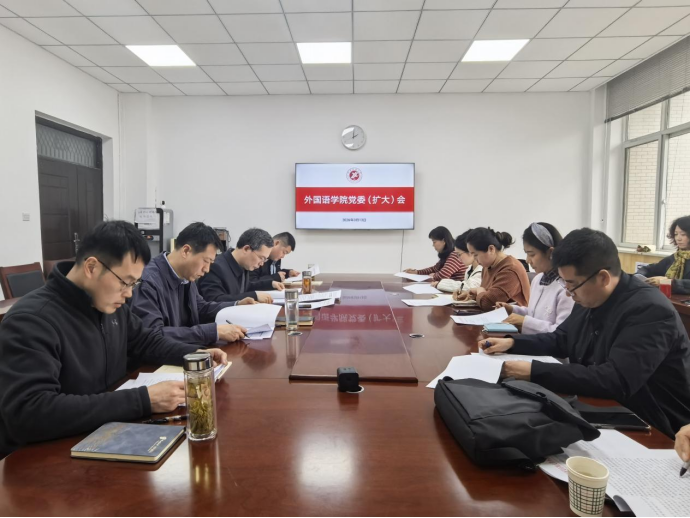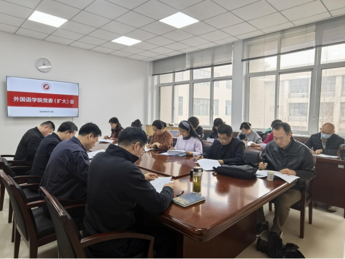 3月13日,外國語學院在鄠邑校區(qū)崇文樓314召開黨委(擴大)會議,認真學習貫徹習近平總書記關于樹立和踐行正確政績觀的重要論述,深入貫徹中央黨的建設工作領導小組會議精神和省委、學校黨委相關要求,部署啟動外國語學院樹立和踐行正確政績觀學習教育工作。學院黨委委員、領導班子成員、學院師生黨支部書記參加會議。會議由學院黨委書記張建高主持。